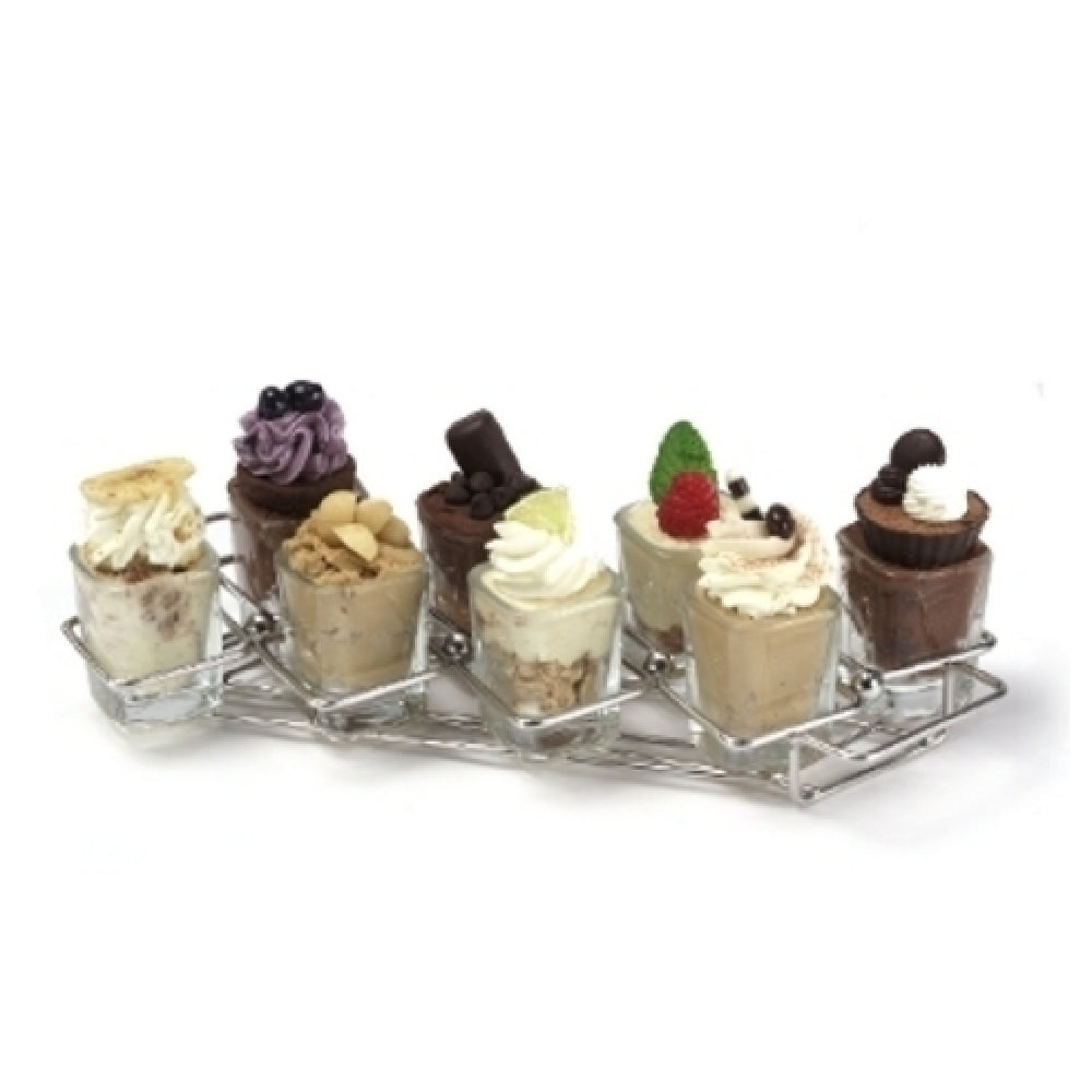 GET Enterprises 4-82018 Dessert Caddy 11-3/4" x 3-1/4" x 1-1/4" With (8) Square Holders is a meticulously designed utility product, crafted from stainless steel to ensure durability and longevity. Measuring 11-3/4" in length, 3-1/4" in width, and 1-1/4" in height, this dessert caddy provides a compact and efficient solution for organizing and serving desserts. The caddy is equipped with eight square holders, making it ideal for accommodating a variety of dessert items securely. This feature enhances operational efficiency, particularly in environments such as restaurants, buffets, and catering services where presentation and organization are paramount. Each unit is packed with 12 per case, optimizing storage and transport logistics for businesses handling high volumes. The use of stainless steel not only contributes to the product's sleek aesthetic but also ensures easy maintenance and resistance to wear and tear, making it suitable for rigorous daily use. The GET Enterprises 4-82018 Dessert Caddy is a versatile addition to any food service operation, providing a practical yet stylish means of showcasing dessert selections. Its technical specifications and robust construction reflect its role as a reliable tool in the competitive hospitality industry.