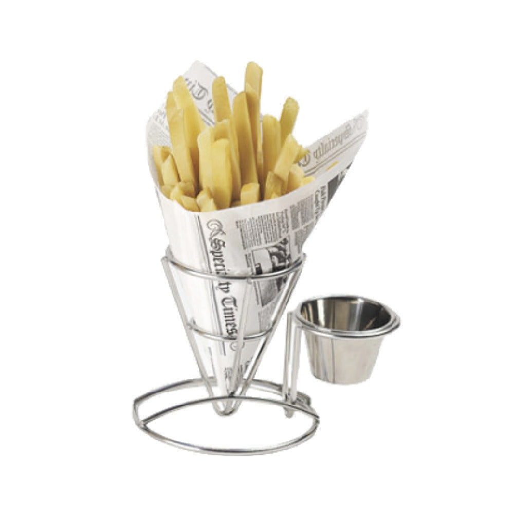 GET Enterprises 4-880164 Fry Cone Basket 3-3/4" Dia. X 5"H With (1) 3-3/4" Dia. Condiment Cup Holder - 12/Case
