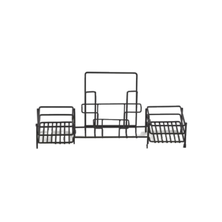 The GET Enterprises 4-931852 Clipper Mill Compartment Caddy is a versatile organizational tool, measuring 15 inches by 4-1/2 inches by 6-3/4 inches, perfect for various professional settings. Its structure features three distinct compartments, providing ample space for sorting and storing items efficiently. This caddy is equipped with a menu holder, making it a practical choice for restaurants and hospitality environments where displaying information alongside utensils or condiments can enhance service efficiency. Constructed from iron and coated with a durable powder finish, the caddy is designed to withstand the rigors of daily use while maintaining a sleek, black appearance. The product is packed with 12 units per case, catering to bulk purchasing needs for larger establishments or distributors. With its functional design and sturdy build, the GET Enterprises 4-931852 Clipper Mill Compartment Caddy serves as an essential accessory for businesses aiming to streamline their operations and maintain an organized environment.