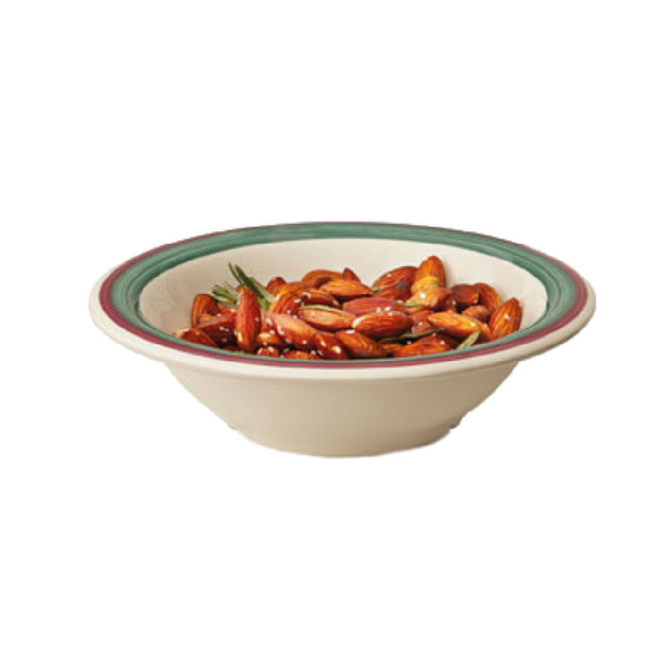 The GET Enterprises B-127-PO Diamond Portofino™ Bowl 12 Oz. (15-1/2 Oz. Rim Full) 7-1/4" Dia. X 1-3/4"H is a meticulously designed serving solution, ideal for various food service environments. This round bowl features a narrow rim, enhancing its aesthetic appeal while maximizing the serving area. With a standard capacity of 12 ounces, and a rim-full capacity of 15-1/2 ounces, it offers versatility for serving diverse dishes. The bowl is crafted from break-resistant melamine, ensuring durability and longevity in high-traffic settings. This material is also BPA free, reflecting a commitment to health and safety standards. Furthermore, the Diamond Portofino™ Bowl is dishwasher safe, facilitating efficient and easy cleaning, making it a practical choice for busy kitchens. Certified by the National Sanitation Foundation (NSF), it adheres to stringent public health and safety requirements. Measuring 7-1/4 inches in diameter and 1-3/4 inches in height, the bowl is optimally sized for both individual and shared servings. Packed by 2 dozen per case, this product is perfectly suited for restaurants, cafeterias, and catering services seeking reliable and stylish dinnerware that combines functionality with a touch of elegance.