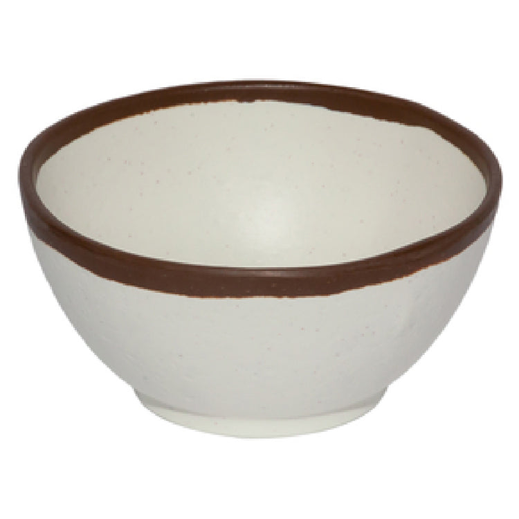 The GET Enterprises B-299-CRM Pottery Market™ Soup/Salad/Pasta/Nappie Bowl 10 Oz. (13 Oz. Rim-full) is a versatile dining solution designed to meet the needs of various food service establishments. This round bowl, with a diameter of 5 inches and a height of 2 inches, has a standard capacity of 10 ounces and can hold up to 13 ounces when filled to the rim. Crafted from durable melamine, it is break-resistant, ensuring longevity and resilience in high-traffic environments. The elegant cream finish with brown trim adds a touch of sophistication to any table setting. Practically designed, it is dishwasher safe, allowing for efficient cleaning and maintenance in busy kitchens. The bowl is NSF certified, guaranteeing compliance with rigorous public health and safety standards, making it an ideal choice for restaurants, cafeterias, and catering services. Additionally, it is BPA free, catering to the health-conscious segment of the market. Packed efficiently by 2 dozen per case, the GET Enterprises B-299-CRM bowl provides an excellent balance of style, utility, and reliability for professional dining establishments seeking durable and safe dinnerware solutions.