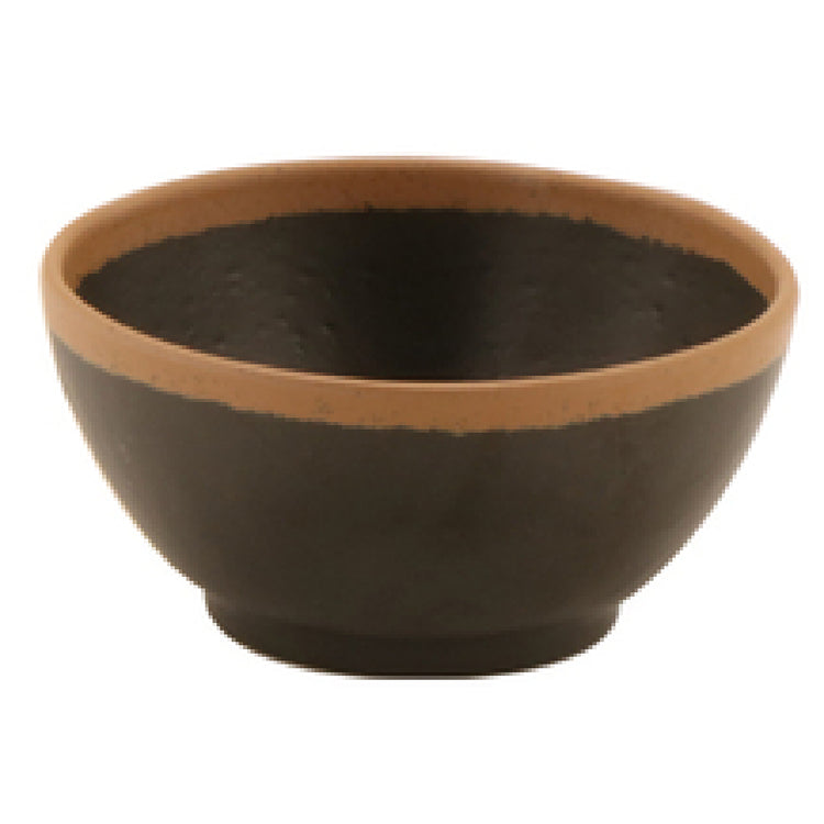 The GET Enterprises B-300-BR Pottery Market Soup/Salad/Pasta Bowl 14 Oz. (18 Oz. Rim Full) is a versatile and durable dining solution, perfect for various food service environments. Measuring 6-1/4 inches in diameter by 2-1/4 inches in height, this round bowl is crafted from break-resistant melamine, ensuring long-lasting use in both commercial and residential settings. Its 14-ounce capacity, with the ability to hold up to 18 ounces when filled to the rim, makes it ideal for serving not only soups, salads, and pasta but also other culinary delights. The bowl's brown color with a clay trim adds a rustic charm to any table setting, appealing to those in the hospitality industry seeking to enhance their presentation aesthetic. Importantly, this product is NSF certified and BPA-free, underscoring its commitment to health and safety standards. Dishwasher safe, it offers ease of cleaning and maintenance, making it an efficient choice for busy kitchens. Packed by the dozen, the GET Enterprises B-300-BR Pottery Market Bowl provides a practical and stylish option for restaurants, cafes, and catering services aiming to balance functionality with design.