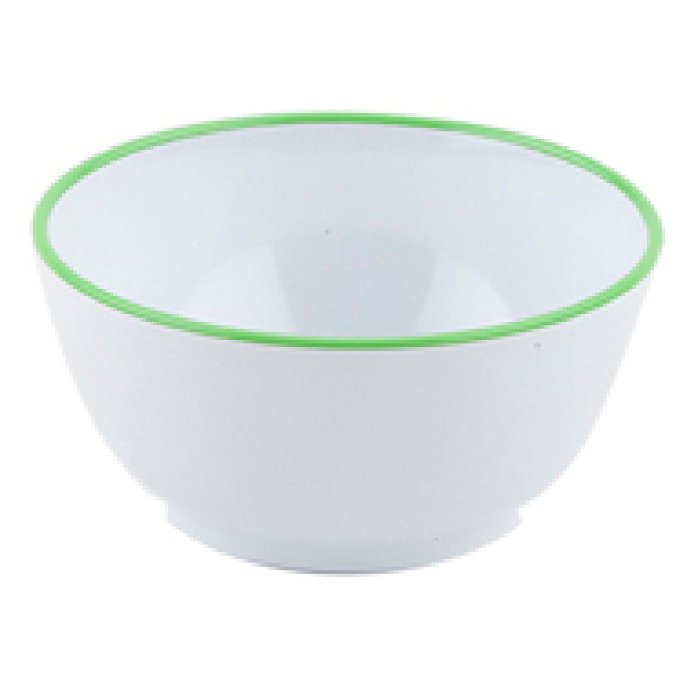 The GET Enterprises B-44-AP Settlement™ Oasis™ Side Dish Small 10 Oz. (12 Oz. Rim Full) is a versatile piece designed to enhance dining experiences in various food service environments. This round side dish, with dimensions of 4-3/4 inches in diameter and 2 inches in height, is crafted from durable melamine, providing a break-resistant and long-lasting solution for high-traffic settings. Its elegant aesthetic, featuring a white body accentuated by an apple green trim, complements a wide range of table settings, from casual eateries to upscale dining establishments. The dish is capable of holding 10 ounces, with a capacity of 12 ounces when filled to the rim, offering ample space for serving a variety of side dishes. It is BPA free, ensuring safety for consumers, and dishwasher safe, facilitating easy and efficient cleaning. Certified by NSF, this side dish meets rigorous public health and safety standards, making it an ideal choice for professional kitchens and catering services. Packed by 2 dozen per case, the GET Enterprises B-44-AP Settlement™ Oasis™ Side Dish combines functional design with aesthetic appeal, catering to the needs of diverse market segments within the food service industry.
