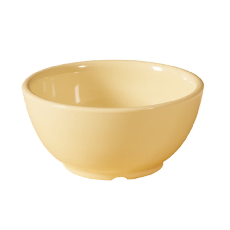 The GET Enterprises B-45-SQ Diamond Harvest™ Bowl is a meticulously designed piece, offering a 10 oz. capacity, with a rim-full capacity of 10-1/2 oz., making it a versatile choice for various culinary uses. This round bowl measures 4-1/2 inches in diameter and stands 2-1/4 inches tall, providing a compact yet spacious serving option. Crafted from high-quality melamine, it boasts break-resistant properties, ensuring durability and longevity in both commercial and home settings. The bowl's appealing squash color adds a vibrant touch to any table setting, enhancing its aesthetic appeal. As a testament to its practicality, this bowl is dishwasher safe, allowing for easy and efficient cleaning, and it is BPA free, ensuring the safety of food service. Certified by NSF, it meets rigorous standards for public health protection. Packed conveniently by 2 dozen per case, this product is an excellent choice for bulk buyers, catering services, and restaurants aiming for reliable, stylish, and functional dinnerware. The GET Enterprises B-45-SQ Diamond Harvest™ Bowl is a valuable asset for professionals in the food service industry, offering a blend of aesthetic appeal, practical functionality, and safety compliance.