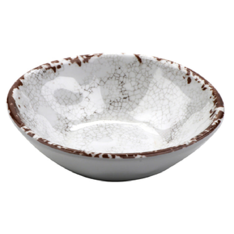 The GET Enterprises B-5-FM French Mill™ Monkey Dish/Side Bowl is a versatile and durable dish designed for various dining environments. Featuring a capacity of 5 oz. with a rim full capacity of 5-1/2 oz., this bowl measures 4-1/2 inches in diameter and stands 1-1/4 inches high. Its small, round, and irregular shape adds a unique aesthetic to table settings, while its break-resistant construction ensures long-lasting use, making it ideal for busy restaurants, cafeterias, and catering services. The dish is crafted from melamine, a material known for its durability and resistance to breakage, making it suitable for high-traffic areas. It is dishwasher safe, allowing for easy cleaning and maintenance, and is BPA-free, ensuring safety for all diners. The GET Enterprises B-5-FM French Mill™ Monkey Dish/Side Bowl is NSF certified, meeting strict public health and safety standards. Packed by 6 dozen per case, this product is an excellent choice for establishments that require reliable and efficient serving solutions, offering both functionality and style for various market segments within the food service industry.