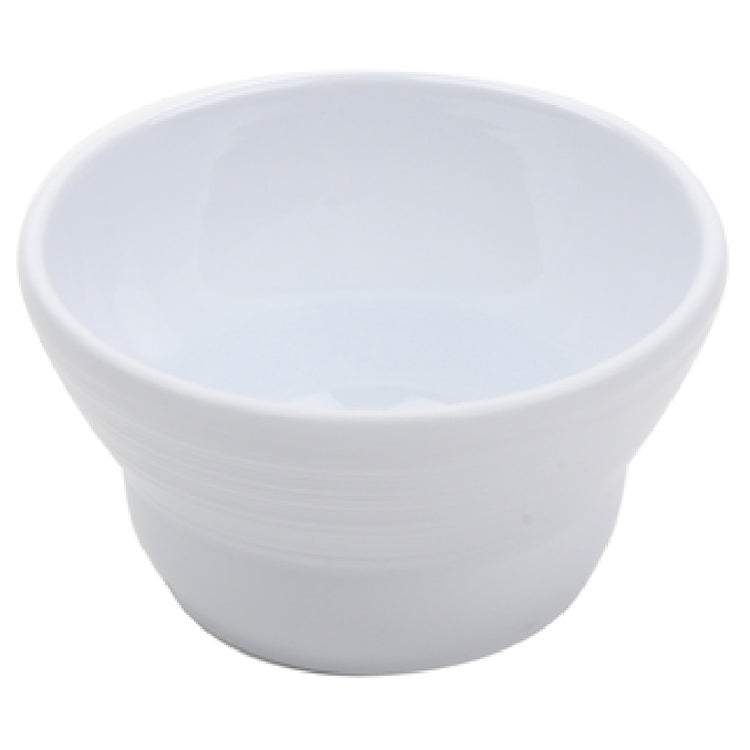 The GET Enterprises B-5-MN-W Minski™ Monkey Dish 5 Oz. (5.5 Oz. Rim Full) 3-1/2" Dia. x 1-3/4"H is a specialized dish designed to meet the diverse needs of the food service industry. Featuring a round shape and a textured rim, this dish provides a stylish and functional presentation for any culinary setting. With a capacity of 5 ounces, expanding to 5.5 ounces when filled to the rim, it caters to portion control requirements, essential for both restaurants and catering services. The dish's compact dimensions of 3-1/2 inches in diameter and 1-3/4 inches in height make it ideal for serving appetizers, sides, or desserts. Made from durable melamine, it is break-resistant and dishwasher safe, ensuring longevity and ease of cleaning—key considerations for busy commercial kitchens. Its pristine white color complements any table setting and enhances food presentation. This dish is NSF certified, guaranteeing it meets strict public health standards, and is also BPA free, making it a safe choice for all dining environments. Packed by two dozen per case, this product offers scalability for various service sizes, making it a versatile tool for professionals in the hospitality sector.