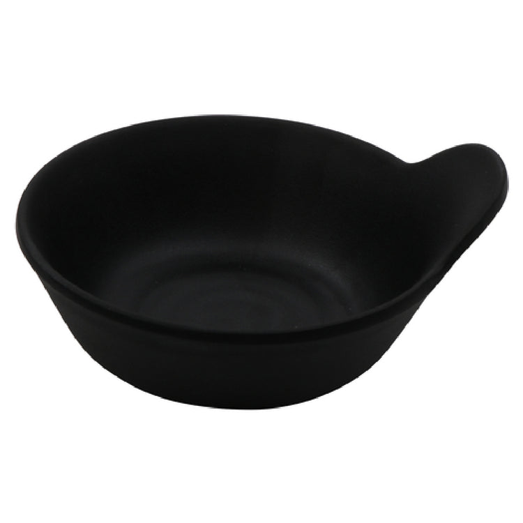 The GET Enterprises B-70-BK Nara™ Soup/Appetizer Bowl is a meticulously designed culinary vessel ideal for serving soups and appetizers with grace. With a capacity of 7 ounces and extending to 7-1/2 ounces when filled to the rim, the bowl is crafted to accommodate a variety of serving sizes. Its dimensions of 4-1/2 inches in diameter and 1-1/2 inches in height make it a compact yet elegant choice for professional presentations. The bowl's robust construction from break-resistant melamine ensures durability and longevity, offering a reliable solution for high-traffic food service environments. Additionally, the bowl is BPA-free and dishwasher safe, aligning with modern safety and hygiene standards. Its sleek black finish provides a sophisticated aesthetic that complements a wide range of table settings. The inclusion of a handle enhances functionality, providing ease of use during service. The NSF certification further underscores its adherence to stringent public health standards, making it a suitable choice for restaurants, catering events, and institutional dining settings. Packed by 2 dozen per case, the GET Enterprises B-70-BK Nara™ Bowl is a practical and versatile option for industry professionals seeking a high-quality, aesthetically pleasing serving solution.
