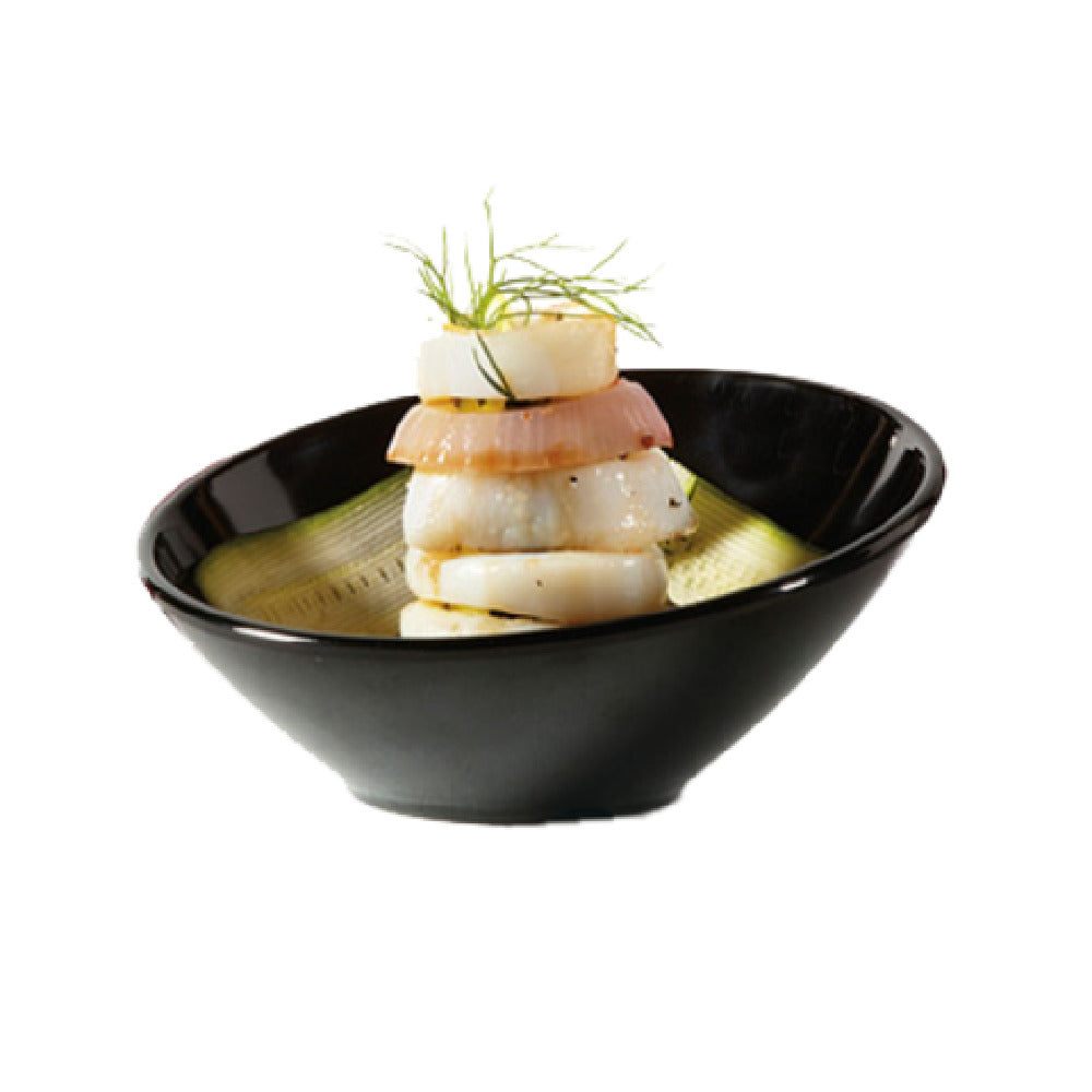 The GET Enterprises B-784-BK Black Elegance™ Bowl 5-1/2 Oz. (5.7 Oz. Rim Full) 4-3/4" Dia. X 2-3/4"H is a beautifully designed piece of tableware that integrates both style and functionality, making it a versatile asset across various industry segments. This round, petite, and cascading bowl has a diameter of 4-3/4 inches and stands at a height of 2-3/4 inches, providing a compact yet elegant solution for serving. With a capacity of 5-1/2 ounces, extendable to 5.7 ounces when filled to the rim, it is ideal for portion-controlled servings. Crafted from break-resistant melamine, this bowl ensures durability and longevity, making it suitable for high-traffic environments such as restaurants and hospitality sectors. The bowl is BPA-free, emphasizing safety alongside its practical use. Its black color adds a touch of sophistication, enhancing presentation in any setting. Certified by NSF, it meets stringent public health and safety standards. Dishwasher safe, it promises easy maintenance and sanitation. Packed by 24 each per case, the GET Enterprises B-784-BK bowl is an economical choice for large-scale events or everyday use in the catering and food service industries, combining practicality with aesthetic appeal.