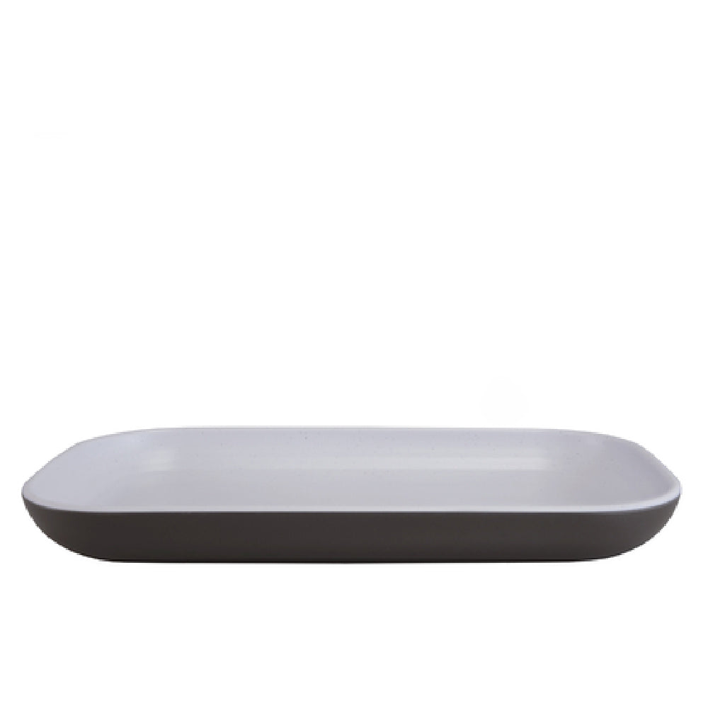 The GET Enterprises B127RC2T-WS/CH Elite Global Solutions Platter/Bowl is a versatile and durable piece, designed with a capacity of 32 oz. and measuring 12 inches in length, 7 inches in width, and 1-1/4 inches in height. This rectangular coupe-style platter/bowl is distinguished by its two-tone color scheme, featuring a white speckled interior and a chocolate exterior, which adds a touch of elegance to any table setting. Constructed from high-quality melamine, this product is engineered to be break, chip, stain, and scratch resistant, making it an ideal choice for various market segments within the food service industry, ranging from high-traffic restaurants to catering services. The B127RC2T-WS/CH is also BPA-free, ensuring safe use in food applications. Its dishwasher-safe attribute further enhances its appeal by facilitating ease of cleaning and maintenance. This platter/bowl is part of the Kona collection and is packed by 6 each per case, catering to bulk purchase requirements. These features combined make the GET Enterprises B127RC2T-WS/CH an essential item for establishments seeking durable, safe, and aesthetically pleasing serving ware.