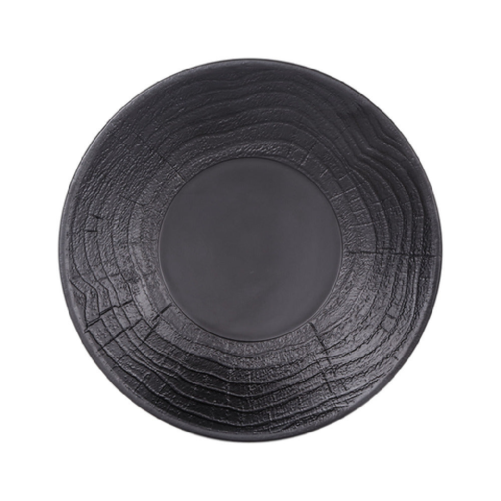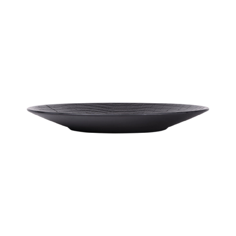 The GET Enterprises B20363-B Elite Global Solutions Plate - 10 3/8" Dia. X 1 1/4"H Round is a highly durable dining solution expertly crafted to meet the needs of diverse industry segments. Measuring 10 3/8 inches in diameter and standing 1 1/4 inches tall, this round plate is formed from premium melamine, ensuring it is break, chip, stain, and scratch resistant, making it ideal for high-volume environments like restaurants, catering services, and cafeterias that require long-lasting tableware. The plate's resilience is further complemented by its dishwasher-safe construction, streamlining post-service cleanup and reducing labor costs. It is BPA-free, aligning with health and safety standards important to consumers and food service providers alike. The elegant black Denali design adds a contemporary touch, enhancing the visual appeal of any dining setting. Each case includes six plates, optimizing storage and inventory management for businesses. The GET Enterprises B20363-B Elite Global Solutions Plate represents a union of style and functionality, appealing to professionals seeking to balance aesthetics with practicality in their service ware. Its robust construction and sophisticated design make it a compelling choice across different market segments within the food service industry.