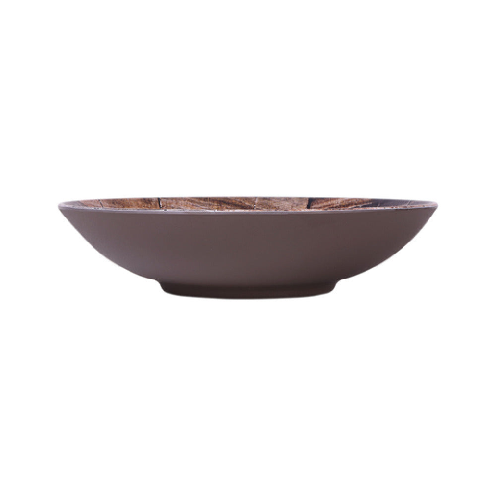 The GET Enterprises B30366-KW Elite Global Solutions Bowl is a versatile and durable dining solution with a capacity of 45 oz., measuring 9 1/2 inches in diameter and 2 1/4 inches in height. This round bowl is crafted from high-quality melamine, a material recognized for its strength and durability in demanding environments. It is designed to be break, chip, stain, and scratch resistant, making it an excellent choice for busy restaurants and catering services where durability is a priority. Additionally, the bowl is dishwasher safe, ensuring easy and efficient cleaning in high-volume settings. The BPA-free construction ensures safety, aligning with health-conscious practices in modern food service. The bowl's Knotwood Denali design adds an appealing aesthetic, combining functionality with an attractive presentation for various dining settings. It is packed with six bowls per case, allowing for convenient bulk purchasing for large dining facilities. The GET Enterprises B30366-KW bowl effectively serves different market segments, from casual dining to upscale eateries, where both resilience and design are valued. Its combination of robustness and style makes it a highly functional asset for food service operations seeking reliable and aesthetically pleasing dinnerware solutions.