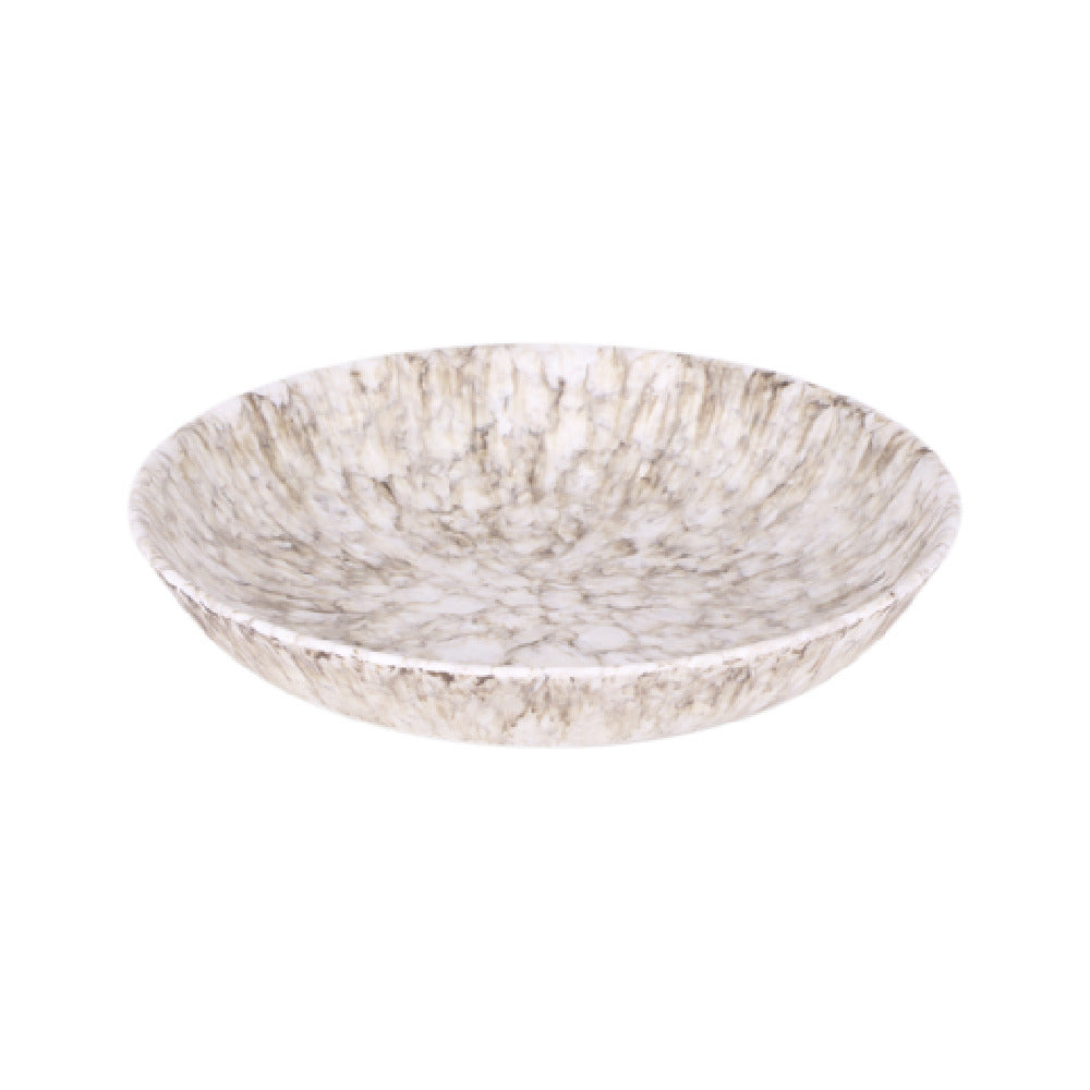 The GET Enterprises B381885-BRM Elite Global Solutions Hermosa Bowl is a versatile dining essential, ideal for diverse foodservice settings due to its robust technical features and aesthetic appeal. This bowl boasts a 36 oz. capacity, making it suitable for serving generous portions. With dimensions of 8-7/8 inches in diameter and 1-3/4 inches in height, it presents a round coupe design that adds a modern touch to any table setting. Crafted from high-quality melamine, the bowl is brown marble in appearance, showcasing an elegant aesthetic. It is engineered to be break, chip, stain, and scratch resistant, ensuring durability in high-traffic environments. The bowl is also dishwasher safe, offering convenience in commercial kitchens by easing the cleaning process. As it is BPA free, it assures safety for consumers, meeting health standards. This product is packed with six bowls per case, making it practical for bulk purchasing in restaurants, catering businesses, and hotels. The GET Enterprises Hermosa Bowl combines functionality, durability, and style, making it an ideal choice for professionals in the foodservice industry who demand reliable and attractive dinnerware solutions.