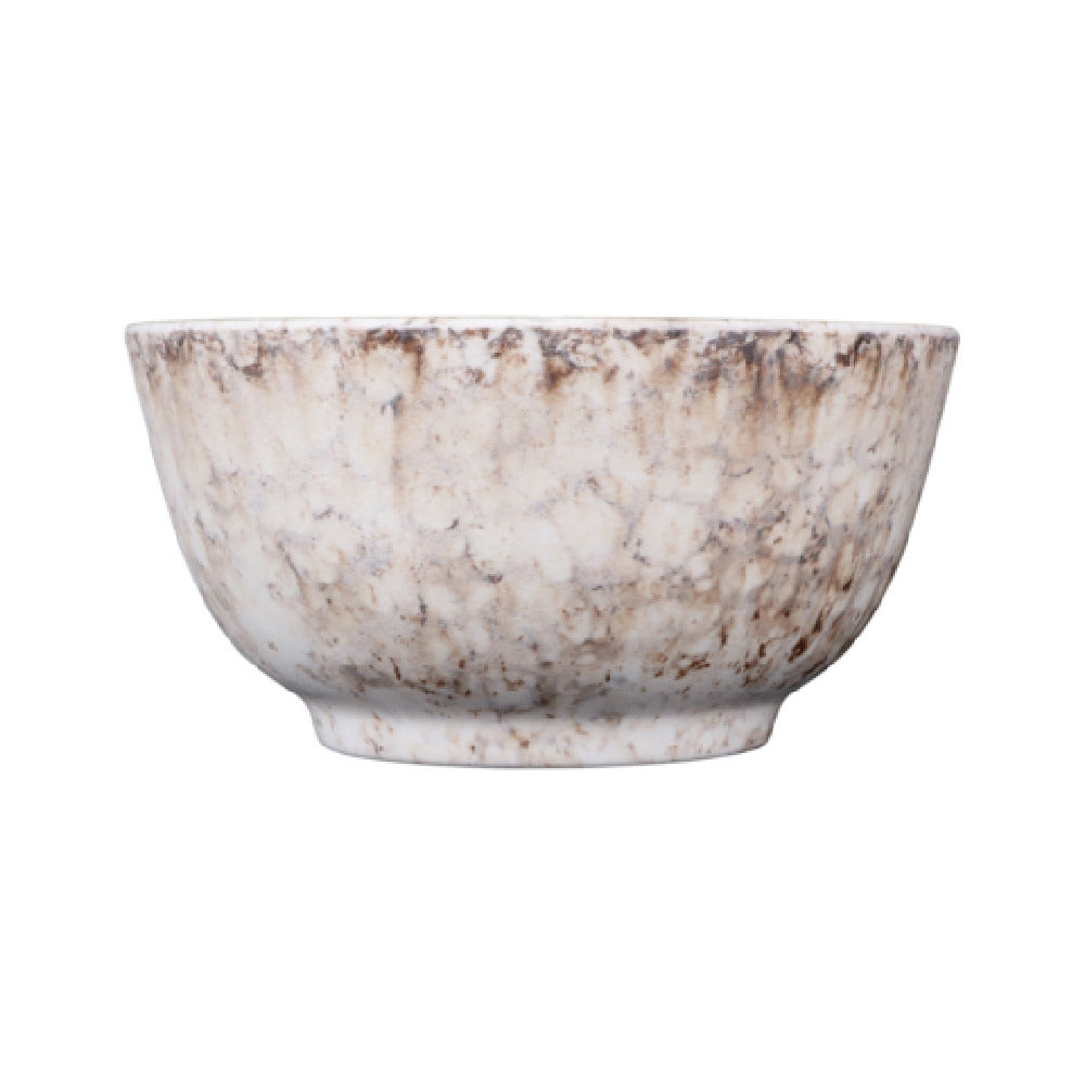 The GET Enterprises B385522-BRM Elite Global Solutions Bowl 5" Dia. X 2 1/2" H. 16 Oz. is a meticulously designed serving solution ideal for various dining environments, from upscale restaurants to casual cafes. With a diameter of 5 inches and a height of 2 1/2 inches, this bowl provides a manageable size for diverse culinary presentations. Its capacity of 16 ounces is perfect for serving soups, salads, or side dishes, ensuring ample portion sizes. Crafted in a striking brown marble finish, the bowl adds an elegant touch to any tabletop setting, enhancing the visual appeal of the food served. The round shape of the Elite Global Solutions Bowl is not only aesthetically pleasing but also functional, offering versatility for different types of cuisine. Packaged in cases of six, this bowl is a practical choice for establishments looking to balance quality with quantity. Its durable construction ensures long-lasting use, making it a wise investment for the foodservice industry. The bowl's design and materials reflect a commitment to style and functionality, catering to the needs of various market segments within the hospitality sector, from fast-paced eateries to fine dining establishments.