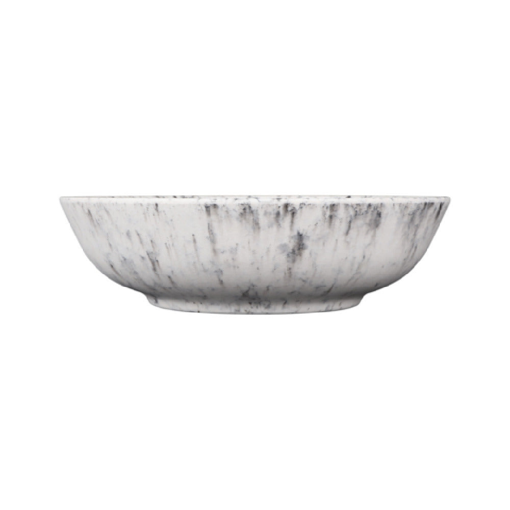 The GET Enterprises B387722-BBM Elite Global Solutions Bowl 7 1/4" Dia. X 2" H. 26 Oz. stands out as a versatile and elegant piece, meticulously crafted to meet the varied demands of the food service industry. This round bowl, with a substantial diameter of 7 1/4 inches and a height of 2 inches, holds up to 26 ounces, making it ideal for accommodating a range of portions in restaurant settings. Its sleek black marble finish, known as Hermosa, not only enhances its aesthetic appeal but also ensures it complements any tableware ensemble with a touch of sophistication. Packaged in a case of six, this bowl is perfect for establishments looking to maintain style and functionality across their dining operations. The Elite Global Solutions line is recognized for its commitment to high-quality materials and durable construction, and this particular bowl exemplifies these qualities, providing a reliable option for both casual and upscale dining experiences. Whether used for serving soups, salads, or desserts, the GET Enterprises B387722-BBM bowl is designed to withstand the rigors of frequent use while maintaining its pristine appearance, making it a valuable addition to any professional kitchen or catering service.