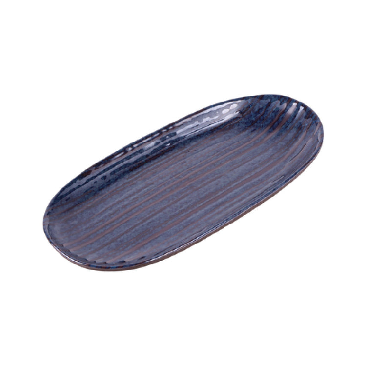 The GET Enterprises B396110-SDB Elite Global Solutions Oval Plate 11" W x 5-1/4" D x 1" H Blue is a meticulously designed serveware piece that combines functionality with aesthetic appeal, suited for various segments within the hospitality industry. This oval plate, with precise dimensions of 11 inches in width by 5-1/4 inches in depth and a height of 1 inch, provides ample space for serving culinary creations while maintaining a sleek profile. The plate's blue Stardust finish adds a touch of elegance, making it an ideal choice for establishments aiming to enhance their dining presentation with a sophisticated color palette. Built to withstand the demands of busy food service environments, the GET Enterprises plate is packed six per case, ensuring convenience and efficiency for larger operations. This product is particularly appealing to restaurants, catering services, and gourmet food establishments seeking high-quality, durable serveware that can elevate their dining experience. Its unique combination of size, color, and durable design makes it a valuable asset for any food service setting, offering versatility and reliability in presentation. The detailed craftsmanship ensures longevity, enabling businesses to maintain a high standard of table service consistently.