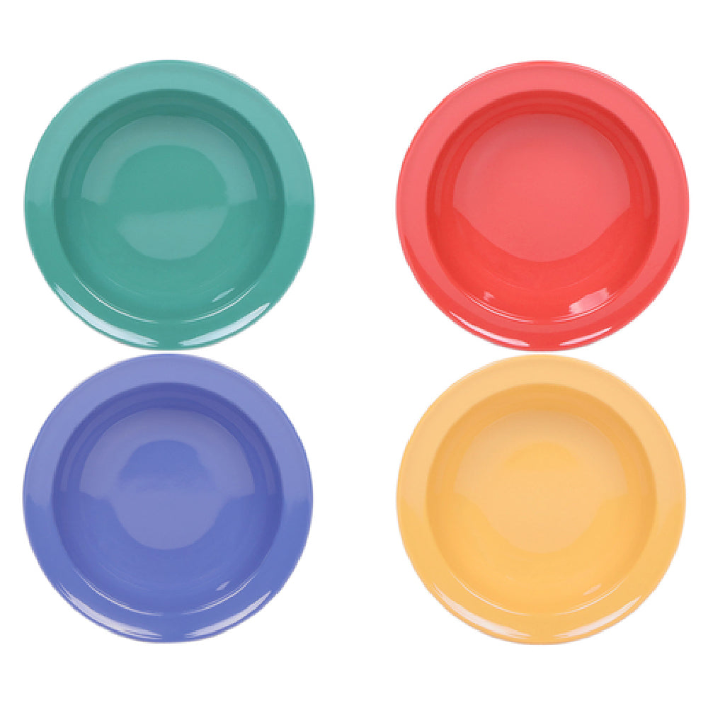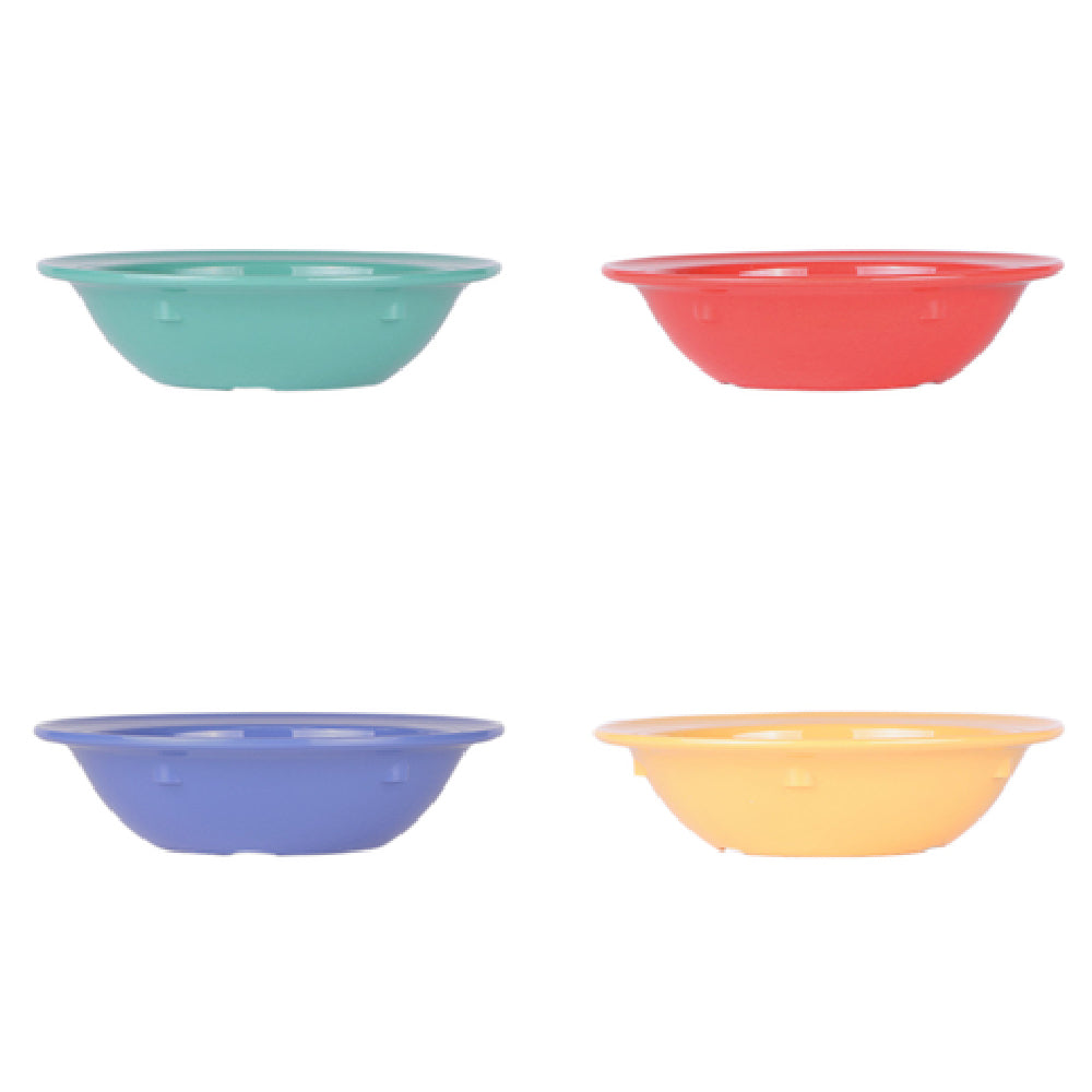 The GET Enterprises B434B-MIX Elite Global Solutions Bowl 5 Oz. 4-3/4" Dia. X 1-1/4"H is an exemplary kitchenware piece designed for durability and versatility. This bowl, with a precise capacity of 5 ounces, features dimensions of 4-3/4 inches in diameter and 1-1/4 inches in height. Constructed from high-quality melamine, it excels as a break, chip, stain, and scratch-resistant option, offering significant longevity and resilience in various settings. This bowl, ideal for both commercial and residential use, is dishwasher safe, ensuring hassle-free cleaning and maintenance. It is BPA-free, catering to health-conscious users by eliminating concerns about harmful chemicals. Available in a mix of attractive autumn green, spring coral, violet, and yellow hues, the bowl adds vibrant aesthetics to table settings. Certified by NSF, it meets stringent health and safety standards, reinforcing its suitability for food service environments. Offered in packs of 12, this bowl is a practical choice for restaurants, catering services, and home use, providing a blend of durability, style, and safety in one package. Its robust construction and colorful design deliver both functionality and visual appeal, making it a valuable addition to any dining or service setting.
