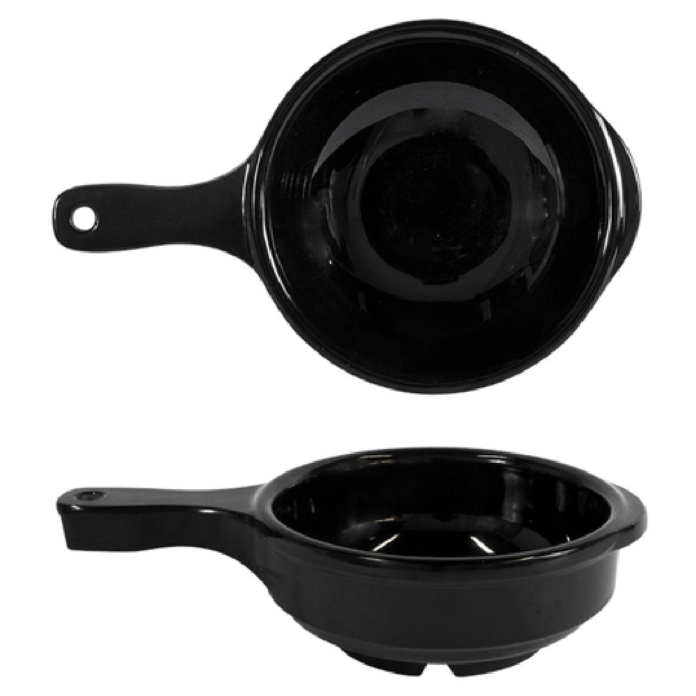 The GET Enterprises B514SB-B Elite Global Solutions Bowl 12 Oz. 5-1/4" Dia. X 2"H is a versatile and durable product designed for various culinary applications. With a capacity of 12 ounces, this round bowl features a practical 5-1/4-inch diameter and a height of 2 inches, making it an ideal choice for serving soups, salads, and side dishes. The bowl is equipped with a convenient 3-inch handle, enhancing ease of use in busy food service environments. Constructed from high-quality melamine, this bowl is break, chip, stain, and scratch resistant, ensuring longevity and reducing the need for frequent replacements. The gloss finish in elegant black adds a touch of sophistication, making it suitable for both casual and formal dining settings. It is dishwasher safe, facilitating quick and efficient cleaning, and is BPA free, prioritizing the safety of consumers. Part of the Merced collection, this bowl is packed by 12 each per case, making it a practical bulk purchase for restaurants, catering services, and hospitality businesses seeking reliable and attractive tableware solutions. Its robust construction and stylish design make the GET Enterprises B514SB-B Elite Global Solutions Bowl a valuable asset in any food service operation.