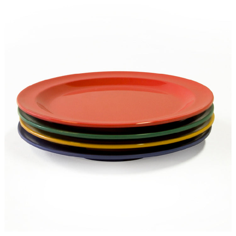 The GET Enterprises B612R-MIX Elite Global Solutions Plate 6-1/2" Dia. X 5/8"H Round is an exceptional piece of tableware designed to meet the demands of diverse dining environments. Measuring 6-1/2 inches in diameter and 5/8 inches in height, this round plate is thoughtfully rimmed to add elegance and functionality to any setting. Crafted from high-quality melamine, it ensures impressive durability by being break, chip, stain, and scratch resistant, making it an ideal choice for both commercial and residential use. Its dishwasher-safe feature simplifies clean-up processes, while being BPA-free guarantees a safe dining experience. Available in a vibrant assortment of colors - autumn green, spring coral, violet, and yellow - it brings a touch of color to any table arrangement. The plate is NSF certified, adhering to strict standards of public health protection, which is crucial for professional food service environments. Packaged with 12 pieces per case, it serves as a reliable, long-lasting addition to restaurants, cafes, and catering services looking to enhance their presentation with durable and visually appealing tableware. The GET Enterprises B612R-MIX Elite Global Solutions Plate is a testament to quality and versatility, making it a valuable asset in any dining service.