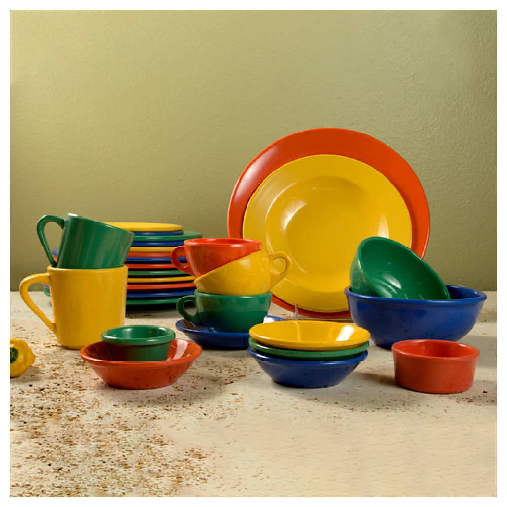The GET Enterprises B91PL-MIX Elite Global Solutions Plate 9" Dia. X 3/4"H Round is a versatile dining solution, particularly designed for dynamic food service environments. This plate, with a diameter of 9 inches and a height of 3/4 inches, is crafted from durable melamine, ensuring it is break, chip, stain, and scratch resistant, thus maintaining its aesthetic appeal over time. It is dishwasher safe and BPA free, aligning with contemporary health and safety standards. The product is available in assorted colors - autumn green, spring coral, violet, and yellow - offering a vibrant and versatile palette to suit various dining themes and settings. This plate is packed 12 per case, making it ideal for both small and large-scale operations in the hospitality industry. The GET Enterprises B91PL-MIX is NSF certified, affirming its adherence to public health and safety regulations. Its robust construction and vibrant design make it suitable for diverse market segments within the dining industry, from high-traffic restaurants to casual dining spaces, where durability and design are equally prioritized.
