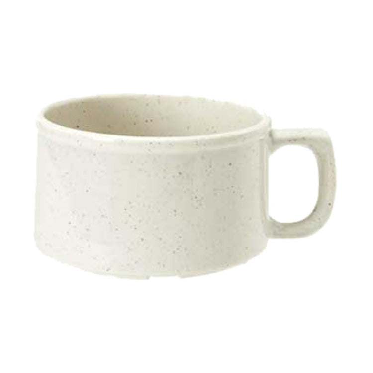 The GET Enterprises BF-080-IR Santa Fe™ Soup Mug is a versatile dining accessory designed for both durability and style, catering to a variety of food service environments. With an 11-ounce capacity and the ability to be filled to 11.8 ounces at the rim, this soup mug offers ample space for serving soups, stews, and more. Measuring 4 inches in diameter and 2-1/4 inches in height, its compact size ensures efficient storage and handling. Constructed from break-resistant melamine, it is ideal for high-traffic settings such as cafeterias, restaurants, and catering services. The ironstone finish adds a touch of elegance, enhancing presentation. This soup mug is dishwasher safe, allowing for easy and efficient cleaning, a critical factor for maintaining hygiene in fast-paced commercial kitchens. Packaged in cases of two dozen, it ensures adequate supply for larger operations. The NSF certification signifies compliance with strict health and safety standards, making it a reliable choice for professional kitchens. The GET Enterprises BF-080-IR Santa Fe™ Soup Mug combines practicality with aesthetic appeal, representing a valuable addition to any foodservice establishment seeking resilient and stylish tableware.