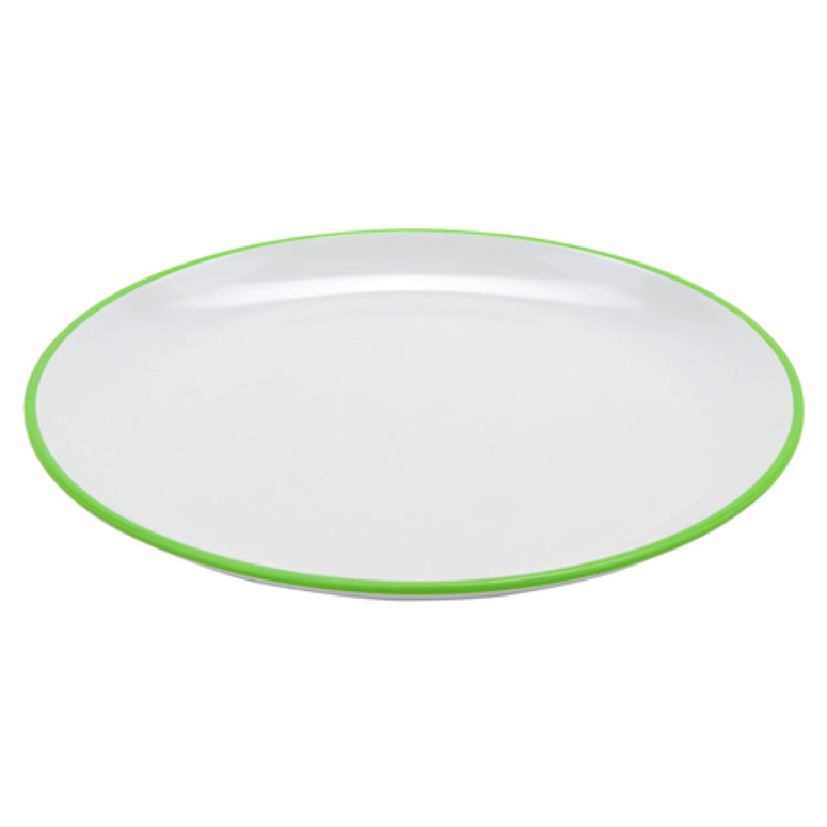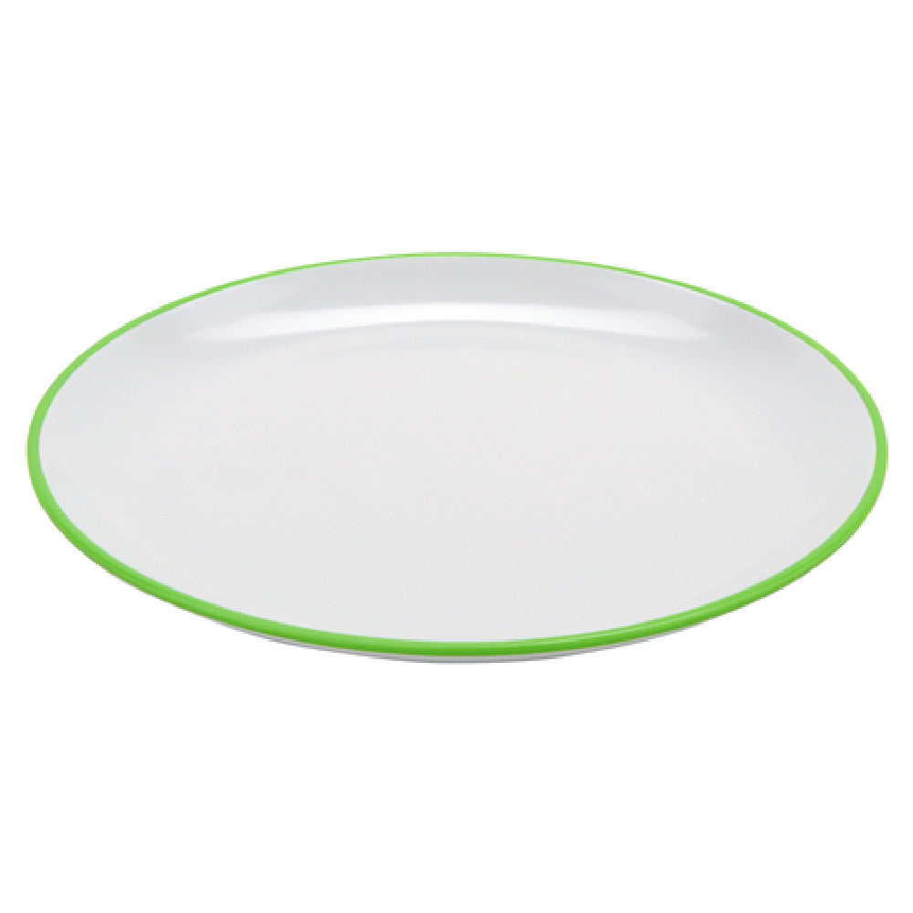 The GET Enterprises BF-1050-AP Settlement™ Oasis™ Dinner Plate 10-1/2" Dia. Round is a meticulously designed dining solution, balancing both durability and aesthetics for diverse culinary environments. This dinner plate features a sizeable 10-1/2-inch diameter, providing ample space for a variety of dishes, from elegant main courses to creative presentations. Engineered with break-resistant melamine, it caters to high-volume settings where resilience against everyday wear is paramount. The plate is dishwasher safe, ensuring effortless maintenance and hygiene, a crucial requirement for efficient kitchen operations. Its BPA-free composition underscores a commitment to safety, making it a reliable choice for health-conscious establishments. The white plate, accented with a subtly vibrant apple green trim, can seamlessly blend into or highlight any table setting, enhancing the dining experience across restaurants, catering services, and hospitality venues. NSF certification further validates its adherence to rigorous public health standards, ensuring it meets the needs of professional food service operations. Sold in quantities of one dozen, the GET Enterprises BF-1050-AP Settlement™ Oasis™ Dinner Plate is an exceptional choice for organizations seeking a balance of style, functionality, and safety in their dinnerware collections, making it a versatile asset across multiple market segments.