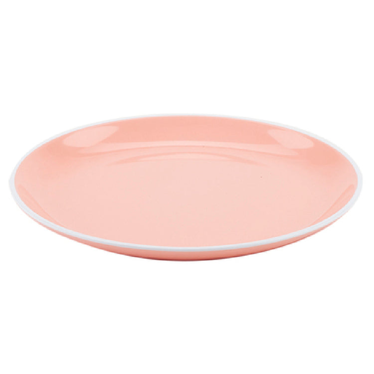 The GET Enterprises BF-950-GF Settlement™ Oasis™ Dinner Plate Small 9-1/2" Dia. is a meticulously crafted dining solution designed for durability and style. Measuring 9-1/2 inches in diameter, this round coupe plate is ideal for serving a variety of culinary creations, from appetizers to desserts. Constructed from break-resistant melamine, it ensures longevity and resilience, making it a practical choice for bustling dining environments. The grapefruit pink finish, accented with a white trim, adds a touch of elegance and vibrancy to any table setting, appealing to both casual and upscale dining experiences. Notably, the plate is dishwasher safe, facilitating easy and efficient cleaning, which is crucial for maintaining high turnover in food services. It is also BPA Free, addressing health and safety concerns by eliminating harmful chemicals. Certified by NSF, this dinner plate meets stringent public health standards, providing reassurance to establishments prioritizing consumer safety. Packed by two dozen per case, it is a cost-effective option for restaurants, hotels, and catering services that require reliable and aesthetically pleasing dinnerware in bulk. The GET Enterprises BF-950-GF plate’s combination of style, safety, and durability makes it a versatile addition to any food service operation aiming to enhance its dining presentation.