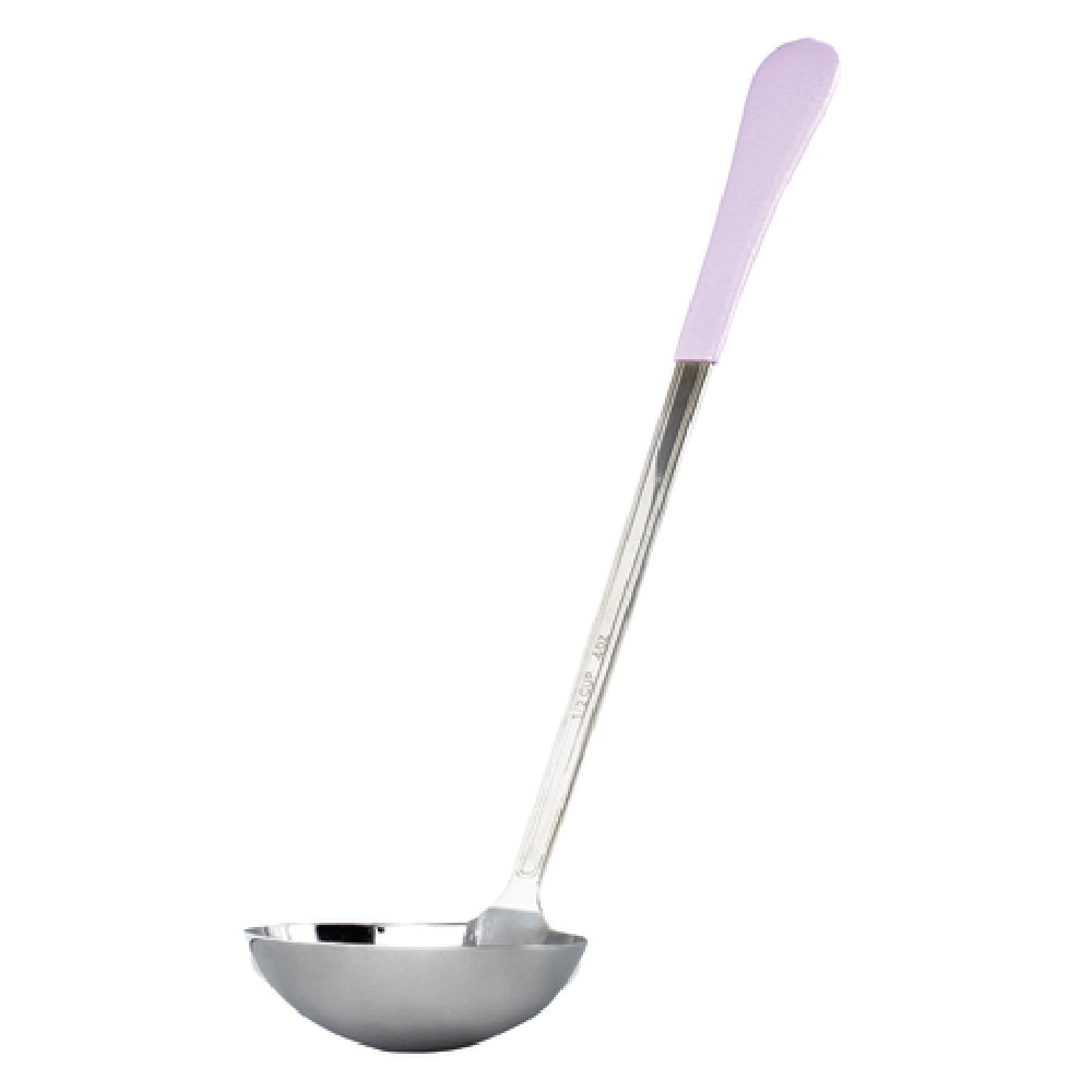 The GET Enterprises BSRIM-58-PR Serving Ladle is a meticulously designed utensil, perfect for various sectors in the food service industry, from restaurants to catering services. This ladle boasts a 4-ounce capacity, making it an ideal choice for precise portion control in soups, sauces, and more. The overall length of 12-1/2 inches ensures optimal reach and ergonomics for seamless serving. Crafted from stainless steel with a mirror finish, the ladle not only exhibits a sleek, professional appearance but also promises durability and resistance to corrosion. A standout feature is the purple high-temp PVC cool-grip handle, offering both heat resistance and comfort, thereby minimizing the risk of burns during extended use in high-heat environments. Furthermore, the ladle is dishwasher safe, simplifying the cleaning process and maintaining hygiene standards. Each case contains 12 units, making it an efficient choice for establishments requiring multiple serving tools. The GET Enterprises BSRIM-58-PR Serving Ladle, with its blend of functionality and durability, is suited for rigorous daily use, ensuring it meets the diverse needs of various food service applications with reliability.