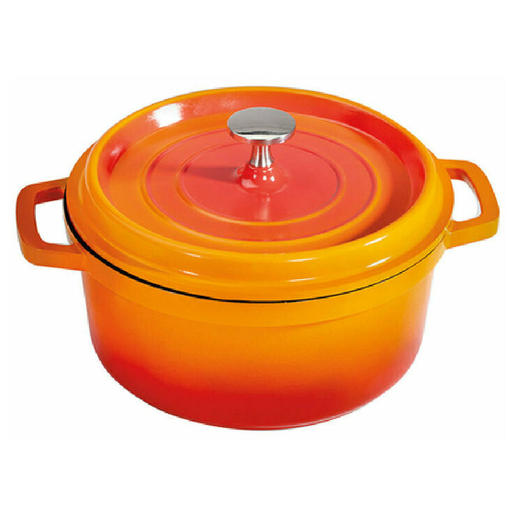 The GET Enterprises CA-013-O/BK/CC Heiss™ Induction Dutch Oven 3/4 Qt. (15/16 Qt. Rim Full) is a versatile and durable cooking solution designed to meet the demands of diverse culinary settings. This Dutch oven boasts a 3/4 quart capacity, expanding to 15/16 quart when filled to the rim, making it suitable for both home cooks and professional chefs who require precision in portioning. Measuring 6 inches in diameter and 2-7/8 inches in height, its compact size is ideal for small batch cooking or specialized dishes. Constructed from cast aluminum with a ceramic enamel coating, it provides excellent heat distribution and retention, capable of withstanding temperatures up to 500°F. This oven-safe, induction, gas, electric, and open flame compatible Dutch oven ensures versatility across various cooking platforms. Its chip and stain-resistant properties enhance longevity, maintaining the aesthetic appeal of its orange exterior and black interior, complemented by a clear coat finish. Included is a lid that supports efficient cooking and moisture retention. Additionally, this Dutch oven is dishwasher safe, simplifying cleanup in fast-paced environments. Packed 16 per case, the GET Enterprises Heiss™ Induction Dutch Oven is an excellent choice for those seeking reliable performance and durability in a compact, stylish package.