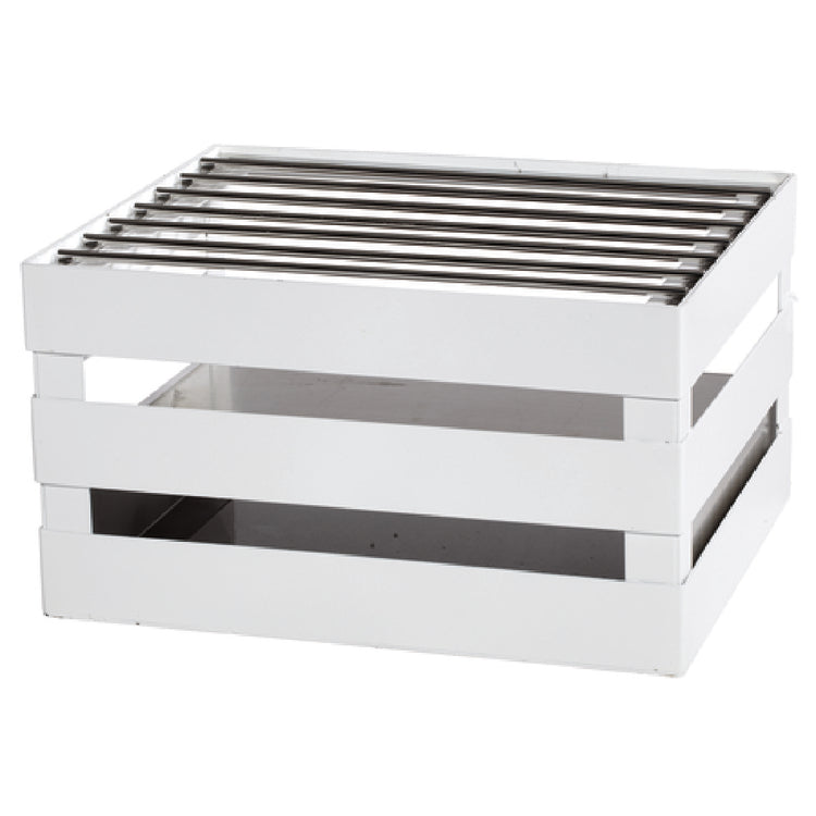 The GET Enterprises CH-HALF-W Urban Renewal Curator™ Chafer Crate Frame is a meticulously designed product tailored for the food service industry, with dimensions of 14-1/2" x 11-3/4" x 8", making it a suitable choice for half-size presentations. This chafer frame is equipped with a stainless steel grill and riser, specifically designed to accommodate a butane burner, ensuring efficient and consistent heating for various culinary settings. The frame is crafted from powder-coated stainless steel, providing durability and a contemporary aesthetic in a clean white finish. The GET Enterprises CH-HALF-W Urban Renewal Curator™ Chafer Crate Frame stands out for its practical design and robust construction, making it an essential item for catering events, buffets, and restaurants that value both functionality and style. With its compact size and versatile functionality, this product caters to a diverse range of market segments within the hospitality and food service industries, offering a practical solution for elegant food display and service needs. Packed by one each, the chafer crate frame emphasizes quality and efficiency, ensuring that it meets the high standards required in professional food service environments.