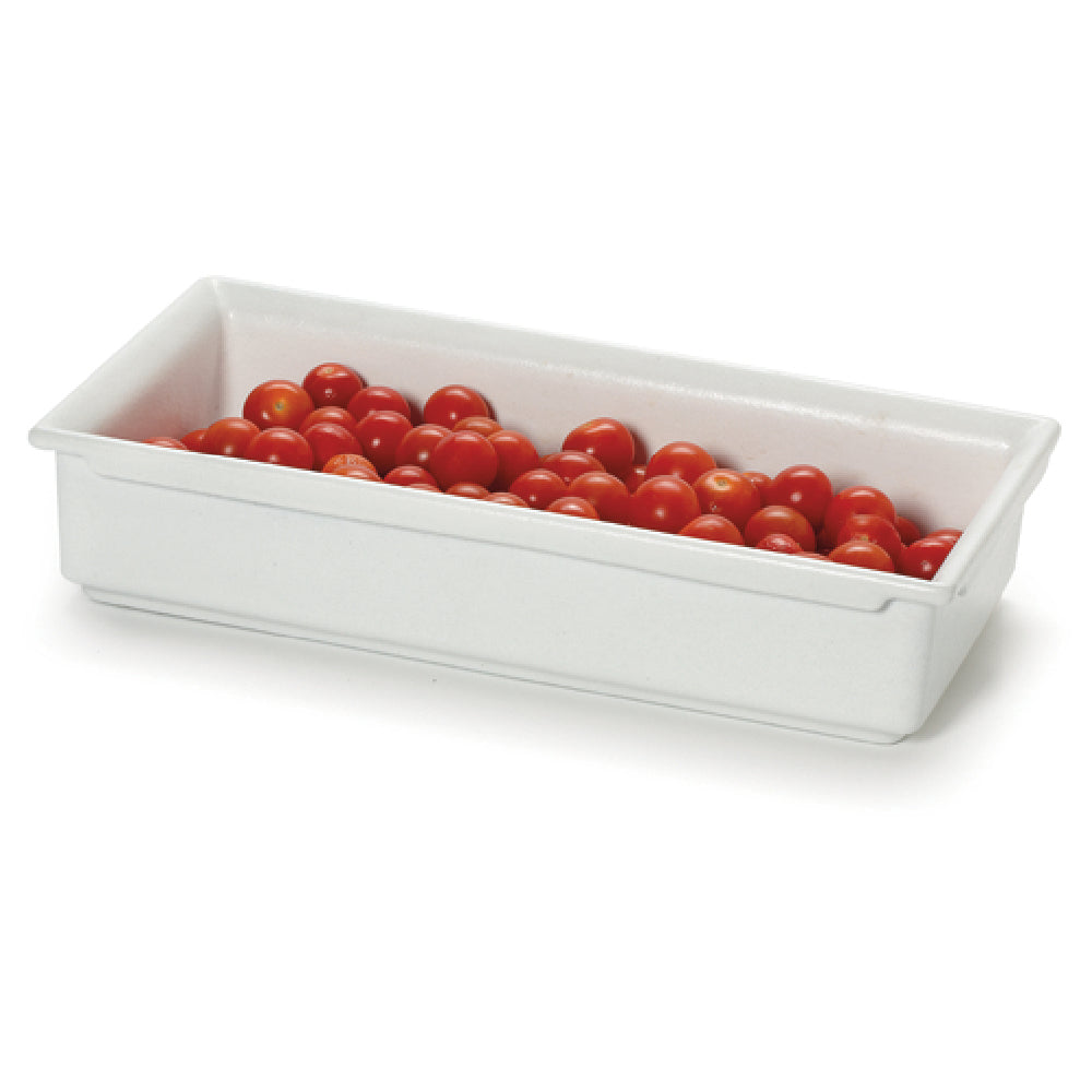The GET Enterprises CIH1/3-WW Bugambilia® Fit Perfect™ Food Pan 1/3 Size 2-1/4 Qt. is an innovative and versatile food storage solution designed for the food service industry. This pan features edge-to-edge dimensions that align with standard stainless steel food pans, ensuring seamless integration into existing setups. Crafted from cast aluminum with a resilient resin coating, the pan guarantees robustness and durability, while its smooth MOD finish in white enhances its visual appeal. The pan measures 12-5/16 inches in length, 6-11/16 inches in width, and 2-1/2 inches in depth, optimizing it for a wide range of culinary applications. With a volumetric capacity of 2-1/4 quarts, it is suitable for both hot and cold food presentations. The stackable design promotes efficient storage, essential for high-volume kitchens. Importantly, this food pan is dishwasher safe, making it easy to maintain hygiene standards. The patent-pending design reflects its unique construction and innovative approach in the marketplace, offering a reliable and stylish solution for caterers, buffets, and commercial kitchens seeking efficiency and functionality. Packed as one each, the Bugambilia® Fit Perfect™ Food Pan is an exemplary choice for professionals demanding quality and performance in food service operations.