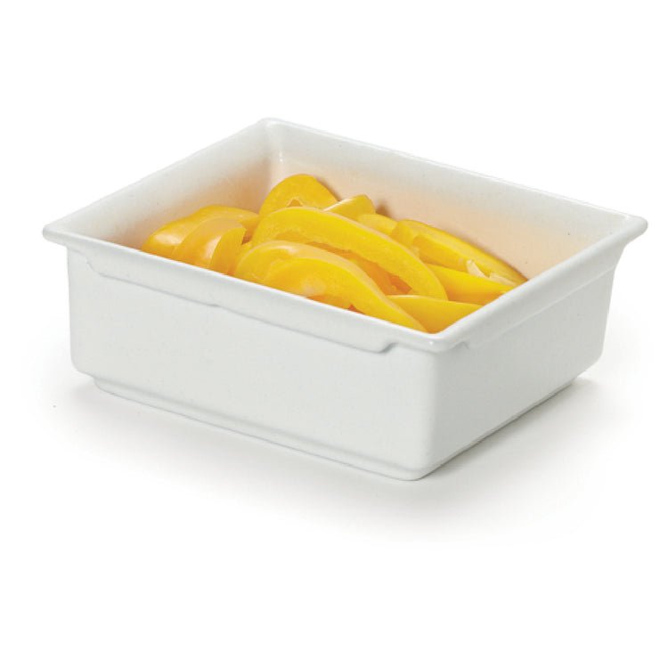The GET Enterprises CIH1/6-WW Bugambilia® Fit Perfect™ Food Pan 1/6 Size 1 Qt. is meticulously designed for foodservice environments requiring precision and reliability. This food pan boasts dimensions of 6-3/4 inches in length, 6-3/16 inches in width, and a depth of 2-1/2 inches, accommodating 1 quart of contents. It features a unique stackable design, optimizing storage efficiency in busy kitchens. Crafted from cast aluminum with a resin coating, the pan offers superior durability and a smooth MOD finish in white, ensuring both aesthetic appeal and functional practicality. Its dimensions align perfectly with standard stainless steel food pans, facilitating seamless integration into existing setups. The GET Enterprises pan is dishwasher safe, promoting ease of cleaning and maintaining hygiene standards. Especially suited for establishments prioritizing quality and efficiency, this product's edge-to-edge design embodies innovative thinking, supported by its patent-pending status. Tailored for diverse market segments, from catering services to restaurant chains, the Bugambilia® Fit Perfect™ Food Pan balances form and function, promising reliable performance and adaptability. Each pan is individually packed, ensuring product integrity upon delivery and ready-for-use convenience for professionals in the culinary industry.