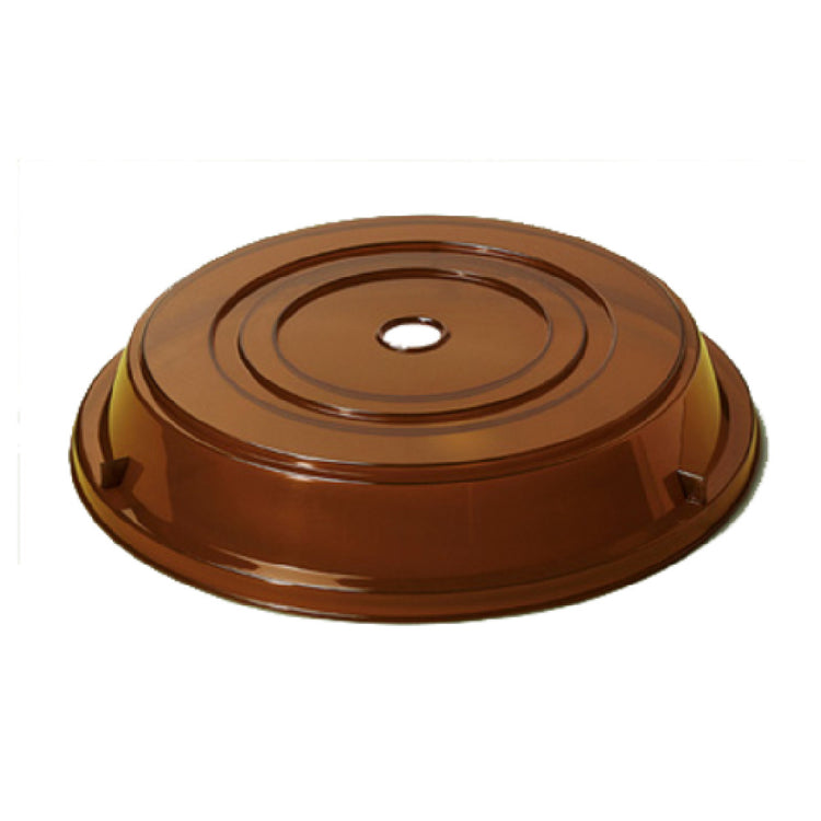 The GET Enterprises CO-105-A Plate Cover is a versatile and durable solution designed to fit round plates ranging from 11-1/4 inches to 12-1/8 inches in diameter, with top insets measuring 4-3/4 inches and 7 inches in diameter. This plate cover is 2-1/2 inches deep, offering ample space to protect and maintain the presentation of your culinary creations. Crafted from break-resistant polypropylene, it ensures longevity and resilience in busy food service environments. The amber hue adds a touch of elegance while being practical for various settings. Its dishwasher-safe and BPA-free construction underscores a commitment to safety and hygiene, making it suitable for both commercial and domestic use. Ideal for restaurants, catering services, and hospitality businesses, this plate cover helps in maintaining the temperature and freshness of dishes during service. Packed by the dozen, it is a cost-effective choice for establishments needing to cover multiple plates simultaneously. The GET Enterprises CO-105-A Plate Cover stands out in the market for its robust build and practical design, meeting the demands of different segment markets, from high-volume institutional kitchens to casual dining venues, ensuring meals are served just as intended.