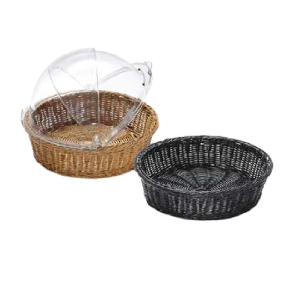 The GET Enterprises CO-2098-CL Clipper Mill Designer Polyweave Baskets Cover 16-1/4" Dia. X 8"H is a meticulously designed accessory tailored for enhancing the functionality and aesthetic appeal of your service presentation. This round, dome-shaped cover is crafted from durable polycarbonate, ensuring a break-resistant structure that stands up to the rigors of regular use. With its clear construction, it seamlessly integrates into various décor styles while providing visibility of contents, making it an ideal solution for both back-of-house and front-of-house applications. Measuring 16-1/4 inches in diameter and 8 inches in height, it offers ample space for covering items stored in the WB-1551 baskets, ensuring their freshness and protection. The cover's dishwasher-safe feature underscores its practicality, allowing for effortless cleaning and maintenance. This product is sold in cases of two, making it a convenient choice for businesses looking to maintain consistency across their service settings. Whether used in catering environments, restaurants, or hospitality venues, the GET Enterprises CO-2098-CL cover is engineered to deliver both utility and style, catering to the diverse needs of different segment markets within the food service industry.