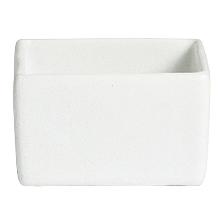 The GET Enterprises COMP01-MOD-WW Bugambilia® Salad Bar Bowl is a versatile addition to any food service operation, featuring a capacity of 25.4 ounces. This square bowl measures 5 inches in length, 5 inches in width, and 3 inches in height, making it an ideal choice for serving salads and other dishes in a stylish and practical manner. Constructed from cast aluminum with a durable resin coating, it ensures longevity and resistance to frequent use. The bowl's smooth MOD finish adds a touch of elegance, while its white color complements various table settings and restaurant décors. Designed with practicality in mind, the Bugambilia® Salad Bar Bowl serves the needs of different market segments within the culinary industry, from upscale dining establishments to casual eateries. Its robust build guarantees it can withstand daily demands, making it a reliable choice for both presentation and functionality. The product requires a lead time of 3-4 weeks and is packed by 1 each, ensuring careful handling and delivery. Whether used in a buffet setting or as a part of a salad bar, the GET Enterprises COMP01-MOD-WW Bugambilia® Salad Bar Bowl seamlessly combines aesthetic appeal with practical design, offering an effective serving solution for diverse culinary environments.