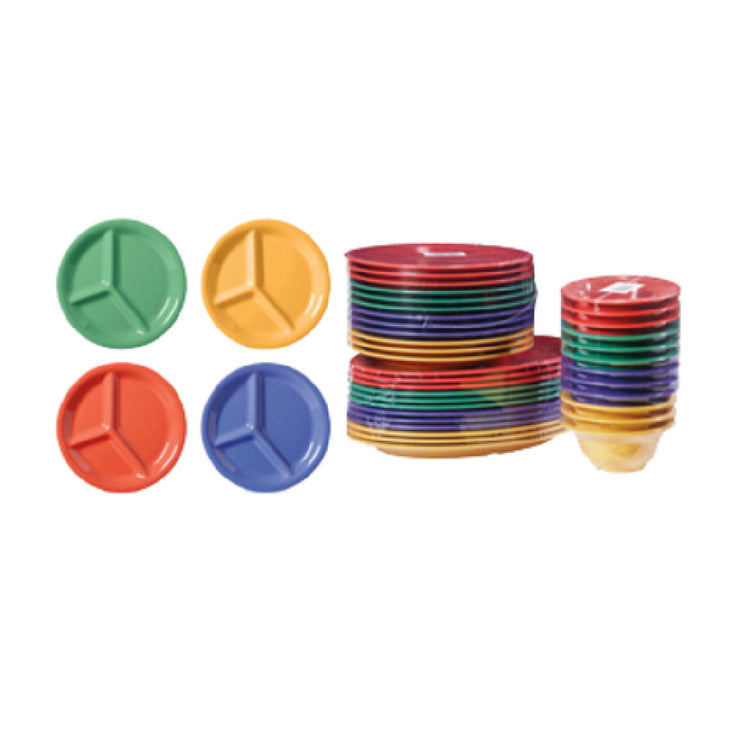 The GET Enterprises CP-10-MIX Diamond Mardi Gras™ Plate 10-1/4" Dia. 3-compartments offers a practical and vibrant solution for serving diverse meals. This round plate, crafted from durable melamine, is break-resistant, providing a sturdy alternative to conventional ceramic dinnerware. Its 10-1/4" diameter accommodates three separate compartments, ideal for portion control and keeping flavors distinct. This design is particularly advantageous in the food service industry, where presentation and practicality go hand in hand. The plate is dishwasher safe and BPA free, underscoring its suitability for both commercial and home kitchens, ensuring ease of use and health safety. Available in a mix pack of four lively Mardi Gras™ colors — tropical yellow, rio orange, peacock blue, and rainforest green — it adds a festive touch to any dining setting. This plate is NSF certified, meeting rigorous public health and safety standards, making it an excellent choice for restaurants, cafeterias, and catering services. Packed by the dozen, the GET Enterprises CP-10-MIX plate is a cost-effective, stylish, and functional solution for any dining environment, reflecting both utility and vibrant aesthetics in its design.