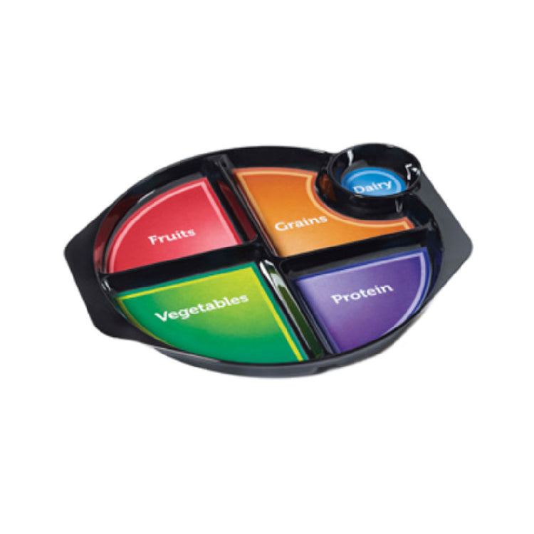 The GET Enterprises CP-535-CMP Choose My Plate Design 11" x 10" 5-compartment plate is an innovative product tailored for educational, healthcare, and institutional use, emphasizing nutrition and portion control. This plate features five distinct compartments, clearly labeled for different food groups - protein, fruits, vegetables, grains, and dairy - to promote balanced meals. The dairy compartment is designed to accommodate items with a 2" base diameter or smaller, and it is compatible with G.E.T. tumblers models 2206-1, 6605-1, 6608-1, 8805-1, 8808-1, 6695-1, and 9955-1. Constructed from durable melamine, this product is break-resistant and dishwasher safe, ensuring ease of use and longevity in demanding environments. The material is BPA-free, reflecting a commitment to safety and health standards, and it holds an NSF certification, affirming its compliance with public health and safety guidelines. Packed by the dozen, this plate is an ideal choice for schools, hospitals, and other facilities committed to nutritional education and healthy eating habits. Its thoughtful design not only aids in meal planning but also supports educational initiatives aimed at teaching portion sizes and balanced diets.