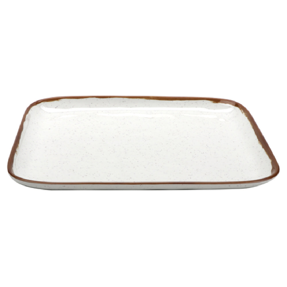 The GET Enterprises CS-1412-RM Rustic Mill™ Platter 14" X 11-1/2" Rectangular is a distinguished serving piece designed to combine durability with aesthetic appeal. Measuring 14 inches by 11-1/2 inches, this rectangular platter features an irregular shape that adds a unique touch to any presentation. Crafted from break-resistant melamine, it provides a robust serving solution suitable for high-traffic environments, ensuring longevity and reduced replacement costs. The platter showcases a cream base adorned with brown speckles and a brown rim, delivering a rustic charm that enhances the visual appeal of the dining experience. As a dishwasher-safe item, it offers the convenience of easy cleaning while maintaining high hygiene standards. The platter is BPA free, aligning with health-conscious practices and ensuring safe usage in food service settings. Additionally, its NSF certification underscores its compliance with public health and safety standards, making it a reliable choice for professional kitchens. Packed at six units per case, the GET Enterprises CS-1412-RM Rustic Mill™ Platter is an ideal solution for caterers, restaurants, and hospitality businesses seeking quality serving ware that seamlessly blends style with functionality.
