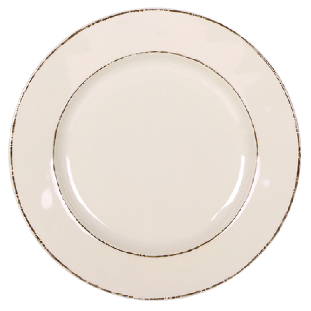 The GET Enterprises D1025T-V Elite Global Solutions Plate 10-1/2" Dia. x 1"H Round is a meticulously crafted dining solution, designed for durability and elegance in various food service environments. This plate measures 10-1/2 inches in diameter by 1 inch in height, making it versatile for different culinary presentations. Engineered with a double-line design in a classic vanilla hue, the plate is part of the Vintage California, Trestles collection, adding a touch of sophistication to any table setting. Constructed from high-quality melamine, the plate is break, chip, stain, and scratch resistant, ensuring longevity and maintaining a pristine appearance through frequent use. It is also dishwasher safe and BPA free, aligning with health and safety standards while providing ease of maintenance. This durability makes it an ideal choice for high-traffic establishments like restaurants, catering services, and hospitality venues that require robust dinnerware solutions. Each case contains six plates, ensuring ample supply for your business needs. The GET Enterprises D1025T-V plate combines functionality with aesthetic appeal, making it a valuable asset for any food service operation seeking reliable and stylish tableware solutions.