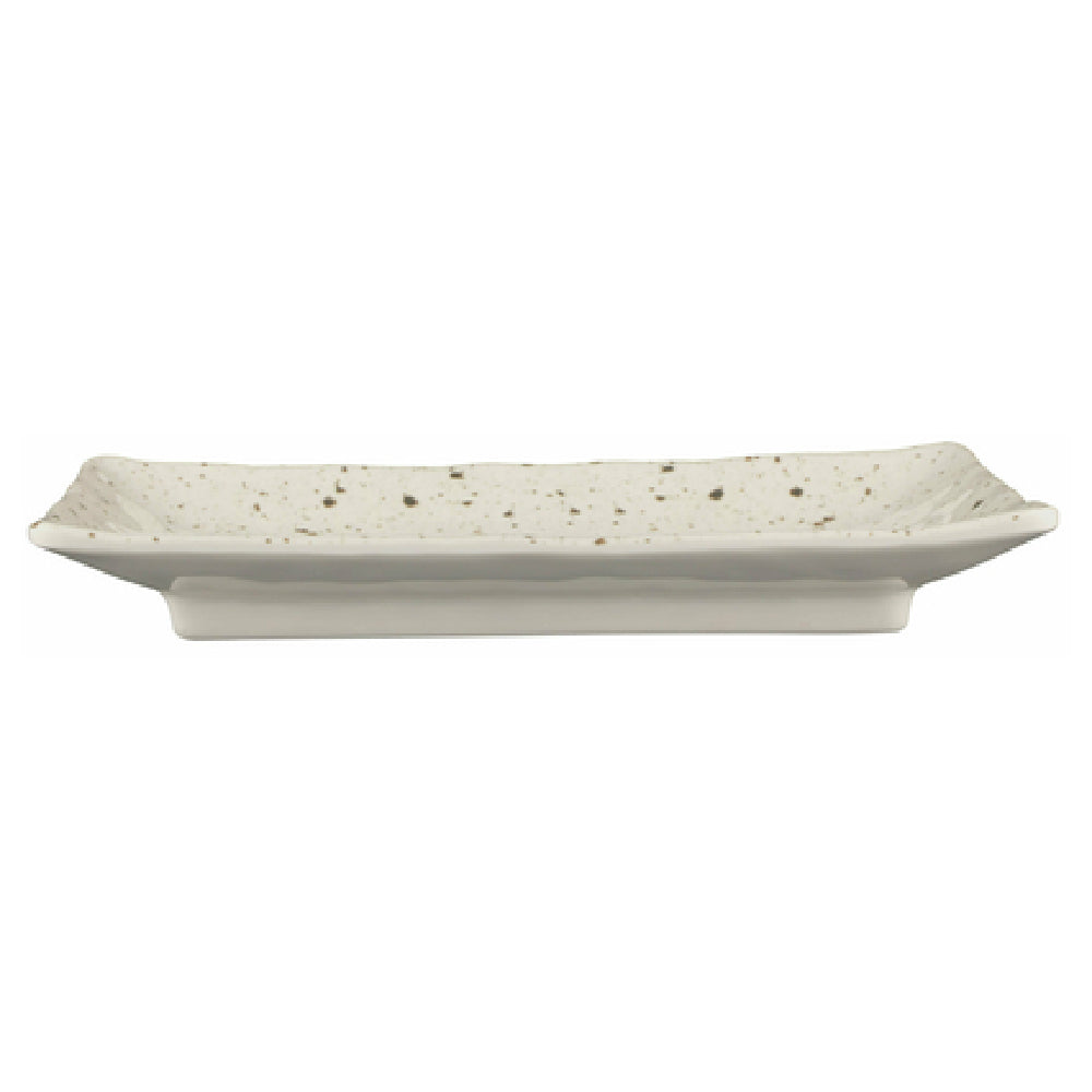 The GET Enterprises D1061RC-CC Elite Global Solutions Plate - 10" x 6-3/4" x 1-3/8"H - is a rectangular serving solution designed to withstand the rigors of high-volume dining environments. This plate is crafted from durable melamine, a material known for its break, chip, stain, and scratch-resistant properties, ensuring longevity and reduced replacement costs. Its dishwashing safety and BPA-free composition highlight the product's commitment to both convenience and health standards. The plate's distinctive chocolate chip design in a Macchiato color scheme adds a touch of elegance to presentation, making it suitable for diverse market segments, from casual dining establishments to upscale catering services. This product is packed six per case, catering to establishments that require bulk purchases. The functional dimensions of 10 inches by 6-3/4 inches with a height of 1-3/8 inches make it ideal for serving a variety of dishes, from appetizers to main courses, while its robust design ensures reliability in everyday use. The GET Enterprises D1061RC-CC Elite Global Solutions Plate delivers a combination of style and practicality, tailored to meet the needs of the food service industry.