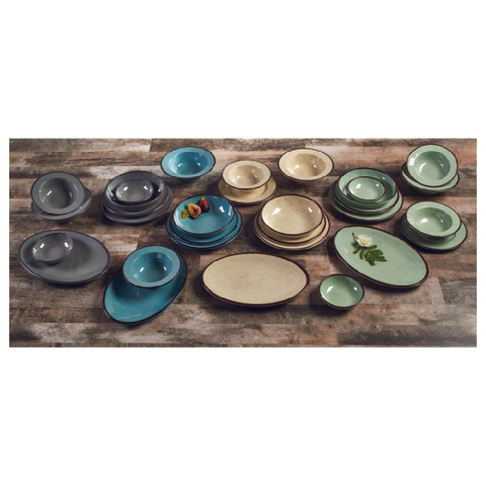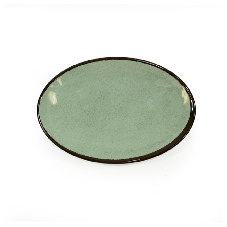 The GET Enterprises D8512OVM-H Elite Global Solutions Plate is a meticulously designed serving solution, measuring 12-1/2" x 8-1/2" x 1"H, crafted to meet the diverse needs of the food service industry. This oval coupe plate showcases a unique crackled texture, adding an aesthetic dimension to its design. Built from durable melamine, it is break, chip, stain, and scratch-resistant, ensuring longevity and reliability under intensive usage. This makes it an ideal choice for high-volume establishments like restaurants, hotels, and catering services. The plate's hemlock color, inspired by the Vintage California Mojave style, offers a sophisticated presentation for any culinary creation. Additionally, it is BPA-free, aligning with health and safety standards. Dishwasher safe, it guarantees ease of maintenance and sanitation, crucial for busy commercial kitchens. Each case contains six of these plates, making it a practical selection for establishments requiring bulk quantities. The GET Enterprises D8512OVM-H plate is designed to withstand the rigors of daily use while maintaining an elegant appearance, making it a valuable addition to any dining service looking to combine style with functionality.