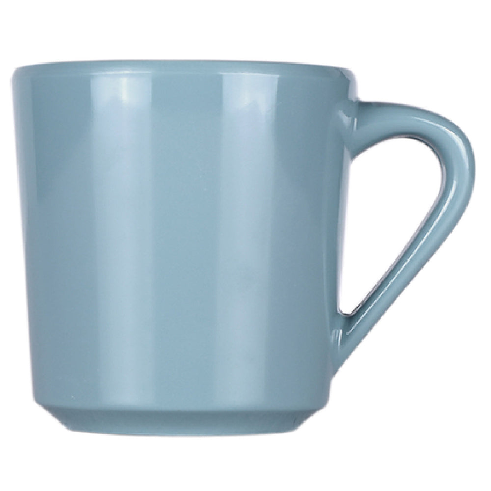 GET Enterprises DC-CB Elite Global Solutions Mug 10 Oz. 3-1/8" Dia. X 3-1/4"H is an exceptional piece of drinkware designed for various dining environments, combining practicality with a touch of elegance. This mug, measuring 3-1/8 inches in diameter and 3-1/4 inches in height, is crafted from high-quality melamine, offering a lightweight yet durable solution for everyday use. Its cameo blue hue adds a Vintage California, Cottage aesthetic, making it a stylish choice for both casual and formal settings. The mug is break, chip, stain, and scratch-resistant, ensuring longevity and maintaining its pristine appearance even under heavy usage. This durability is complemented by its dishwasher-safe design, making cleaning effortless and convenient. Additionally, the mug is BPA-free, prioritizing health and safety for its users. Packed by six per case, it caters to a range of segment markets, from bustling cafes to serene domestic kitchens, providing a reliable and aesthetically pleasing drinkware option. The GET Enterprises DC-CB Elite Global Solutions Mug stands out for its remarkable balance of functionality and design, making it an indispensable component in the food service industry.