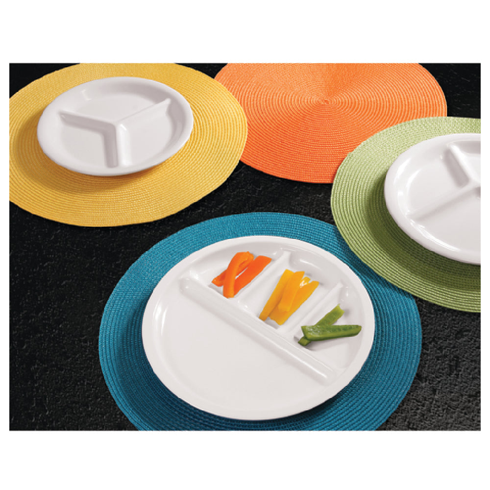 GET Enterprises DC103-W Elite Global Solutions Plate 10" Dia. X 1"H 3-compartment - 6/Case
