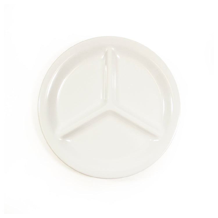 The GET Enterprises DC903-W Elite Global Solutions Plate 9" Dia. X 1"H Round is a versatile piece designed for durability and functionality across various industry segments. Featuring a 9-inch diameter and a 1-inch height, this plate is constructed from high-quality melamine, making it break, chip, stain, and scratch resistant. Its design includes three compartments, making it ideal for portion control and presentation in food service settings. The plate is dishwasher safe, ensuring ease of cleaning in fast-paced environments, and is BPA free, aligning with health and safety standards. This makes it particularly suited for restaurants, catering businesses, and institutional dining settings that prioritize both durability and aesthetic presentation. The clean, white finish of the plate complements any table setting or food presentation. Each case contains six of these robust plates, ensuring ample supply for commercial usage. The GET Enterprises DC903-W Elite Global Solutions Plate is an excellent choice for professionals seeking reliable, long-lasting dinnerware that withstands the rigors of daily use while maintaining a high-quality appearance.