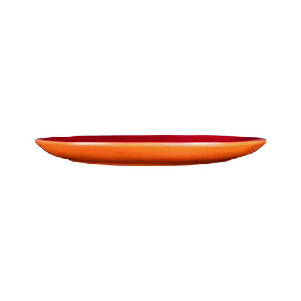 The GET Enterprises DG9R-RG Elite Global Solutions Plate 9" Dia. X 7/8" H. Round is a meticulously crafted dining solution tailored for a variety of market segments, from high-end restaurants to casual dining establishments. This plate, with its 9-inch diameter and 7/8-inch height, is designed in a coupe style, offering a sleek and modern presentation. Constructed from durable melamine, it is break, chip, stain, and scratch resistant, ensuring longevity and resilience under frequent use. The Red glaze finish, in the Maya design, adds a vibrant aesthetic appeal that enhances any dining setting. This plate is notably BPA free, catering to health-conscious consumers who prioritize safe dining materials. Moreover, it is dishwasher safe, facilitating easy cleaning and maintenance, which is essential for busy commercial kitchens. Packed by six each per case, it provides an efficient stocking solution for businesses. By combining durability with an eye-catching design, the GET Enterprises DG9R-RG Elite Global Solutions Plate stands out as a reliable and stylish choice for food service operations seeking to elevate their table settings while ensuring practical usability and cost-effectiveness.