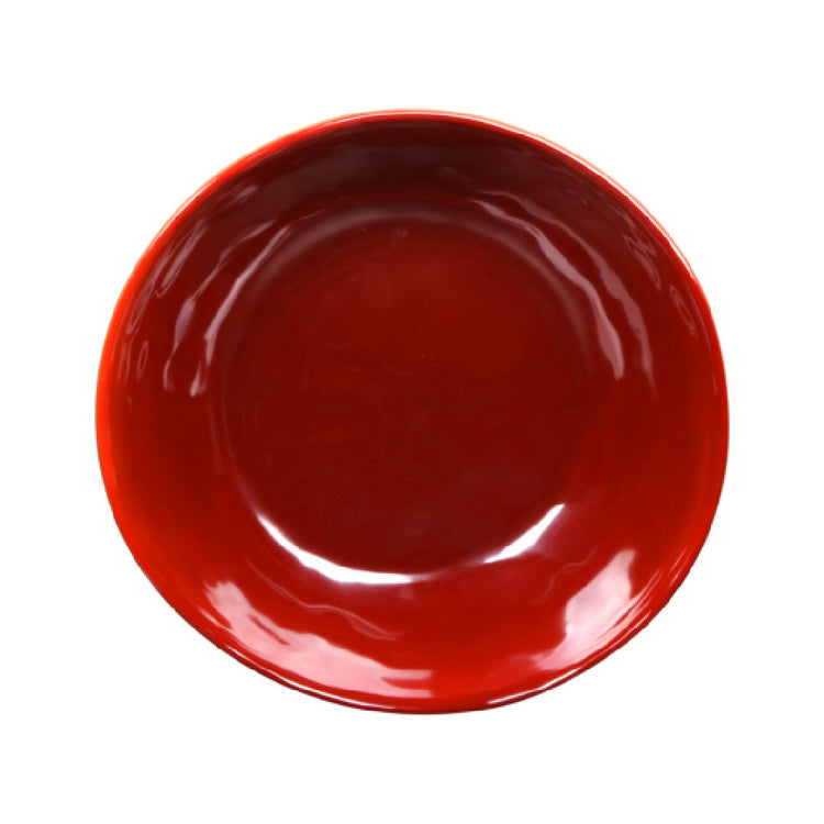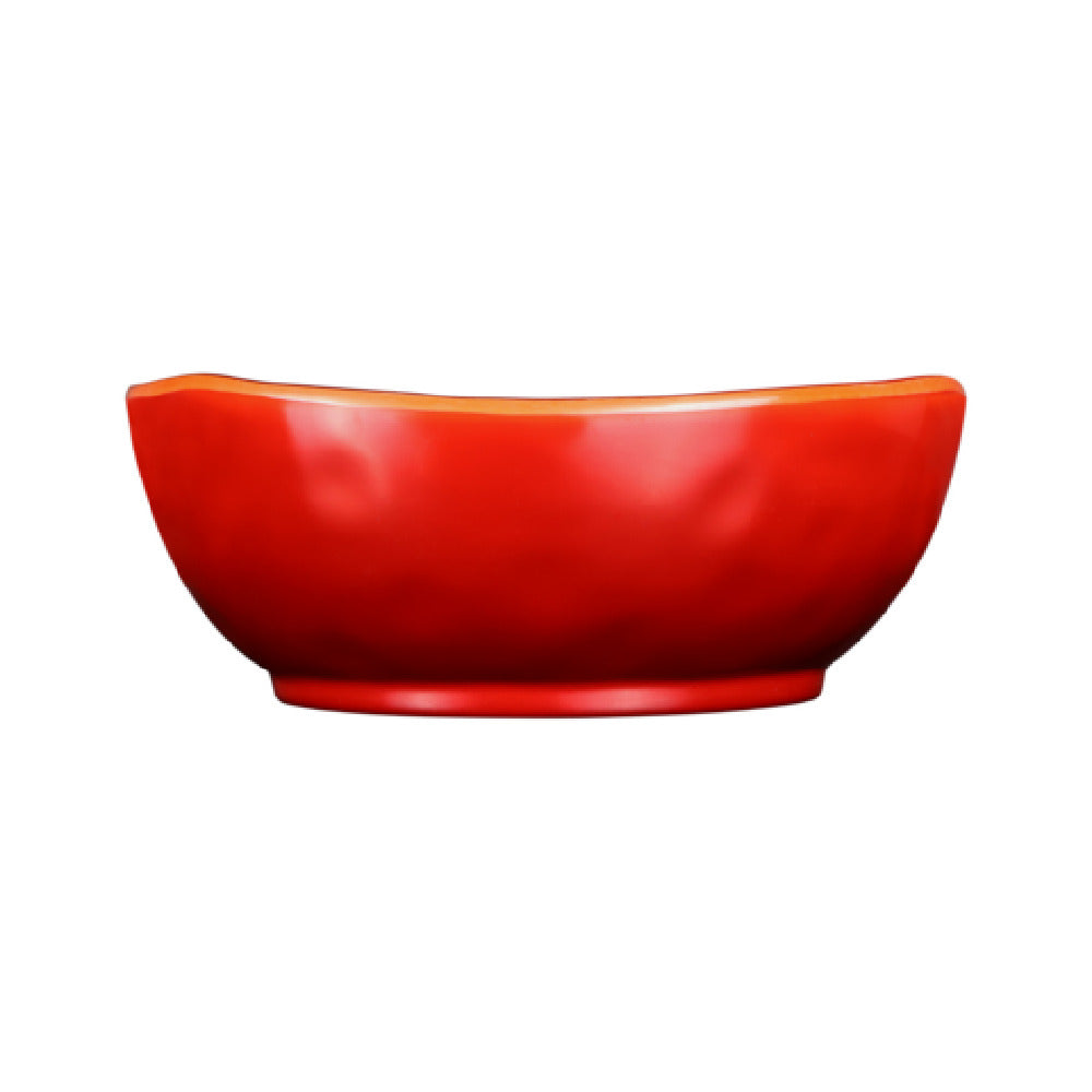 The GET Enterprises DGB83R-RG Elite Global Solutions Irregular Bowl is a distinctive addition to any food service setting, featuring an 8 1/4-inch diameter and a 3-inch height, with an ample capacity of 48 ounces. This bowl's round shape, combined with its irregular design, offers an appealing aesthetic ideal for various presentation contexts. It is crafted from durable melamine, ensuring it is break, chip, stain, and scratch resistant, making it a reliable choice for high-traffic environments. The bowl's red glaze provides a vibrant touch to tabletop settings, while its Maya pattern adds an element of uniqueness to the dining experience. Designed with practicality in mind, this bowl is dishwasher safe, ensuring ease of maintenance and long-lasting use. Additionally, it is BPA-free, aligning with health and safety standards. This product is packed in cases of six, making it suitable for large-scale food service operations, from restaurants to catering businesses. Its robustness and aesthetic qualities make it a versatile option for a variety of market segments within the food industry, including casual dining establishments, upscale bistros, and buffet services. The GET Enterprises DGB83R-RG bowl combines functionality with style, meeting the demands of professionals who value quality and design.
