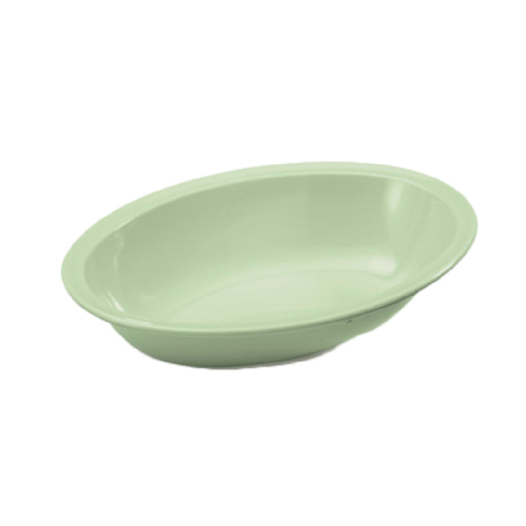 The GET Enterprises DN-332-G Supermel™ Bowl 32 Oz. (36 Oz. Rim Full) 10" X 7-1/4" X 2-1/4"H is a versatile dining solution that combines practical features with contemporary design, making it a compelling choice for various sectors in the food industry. This oval-shaped bowl, crafted from durable melamine, offers a significant capacity of 32 oz., with a 36 oz. rim full, ideal for serving generous portions in restaurants, cafeterias, and catering services. Its dimensions of 10" x 7-1/4" x 2-1/4"H provide an elegant presentation while maintaining a compact form for efficient storage and handling. The bowl's break-resistant nature ensures longevity and dependability in high-traffic environments, reducing replacement costs and enhancing operational efficiency. Additionally, its dishwasher-safe attribute streamlines the cleaning process, essential for maintaining hygiene standards in any food service establishment. The bowl's green hue adds a touch of color to dining settings, complementing a variety of table arrangements. With NSF certification, this bowl meets rigorous health and safety requirements, making it a reliable choice for businesses committed to quality and compliance. Packed by the dozen, the GET Enterprises DN-332-G Supermel™ Bowl provides a practical and stylish solution for diverse culinary needs.