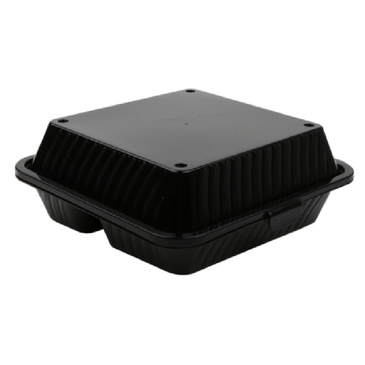GET Enterprises EC-09-1-BK G.E.T Food Container 9"L X 9"W X 3-3/4"H 3-compartments - 1 Dozen