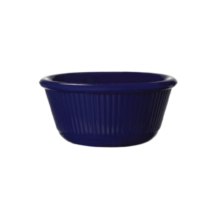 The GET Enterprises ER-403-CB Ramekin 3 Oz. 3" Dia. X 1-1/4" Deep is a durable and versatile kitchen accessory designed to withstand daily commercial use. With a compact size of 3 inches in diameter and 1-1/4 inches deep, it is perfectly suited for serving condiments, sauces, or small portions of food in any culinary setting. Crafted from SAN (styrene acrylonitrile), this ramekin is break-resistant, ensuring longevity and minimizing replacement costs. The fluted design not only adds a touch of elegance to your presentation but also enhances grip for easy handling. Available in a striking cobalt blue, it can add a pop of color to any table setting. This ramekin is dishwasher safe, making cleaning and maintenance hassle-free, thereby increasing efficiency in fast-paced environments. Packed in quantities of four dozen per case, it provides an economical solution for large-scale operations such as restaurants, catering services, and hospitality venues looking to optimize their serving processes. The GET Enterprises ER-403-CB Ramekin combines practicality with aesthetic appeal, making it an essential addition to any foodservice establishment aiming to provide a seamless dining experience.