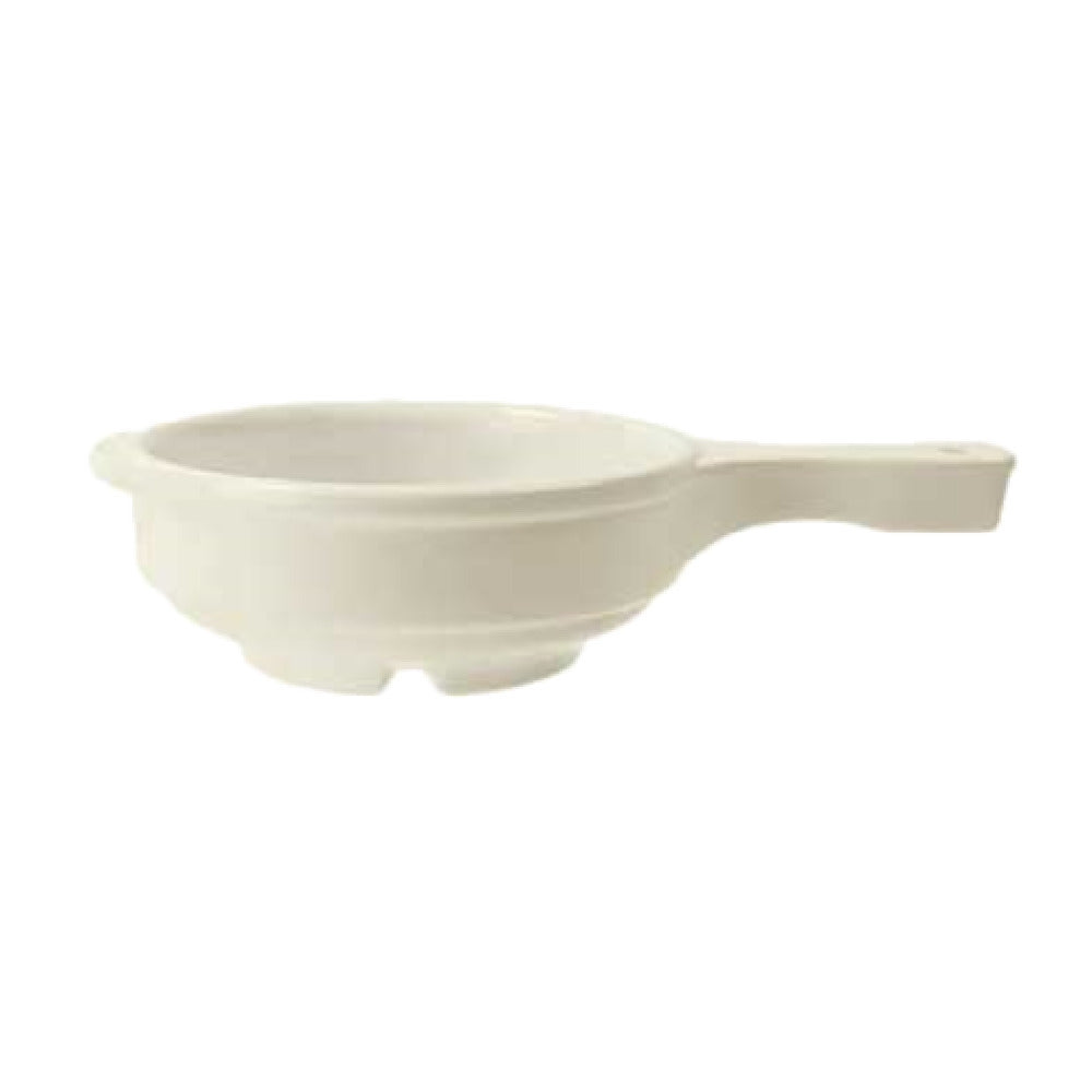 The GET Enterprises HSB-112-IV Soup Bowl 12 Oz. (13-1/2 Oz. Rim Full) 5-1/4" Dia. X 2" Deep is a versatile and practical choice for any food service establishment. This round bowl is designed with a convenient handle, enhancing ease of use and transportability in bustling kitchen environments. Crafted from break-resistant melamine, it offers superior durability, making it a reliable option for high-volume settings. Additionally, this soup bowl is dishwasher safe, simplifying cleaning processes and ensuring a quick turnaround between uses. The BPA-free construction aligns with health-conscious dining practices, while the elegant ivory color adds a touch of sophistication to table settings. With dimensions of 5-1/4" in diameter and 2" in depth, this bowl is perfectly sized for serving hearty portions of soup, stew, or chowder. The bowl's capacity of 12 oz., extending to 13-1/2 oz. when filled to the rim, is ideal for accommodating generous servings. Compliance with NSF standards guarantees its suitability for commercial use, meeting stringent safety and quality criteria. Packed by 2 dozen per case, the GET Enterprises HSB-112-IV Soup Bowl balances practicality with aesthetic appeal, making it an adaptable solution for diverse dining environments.
