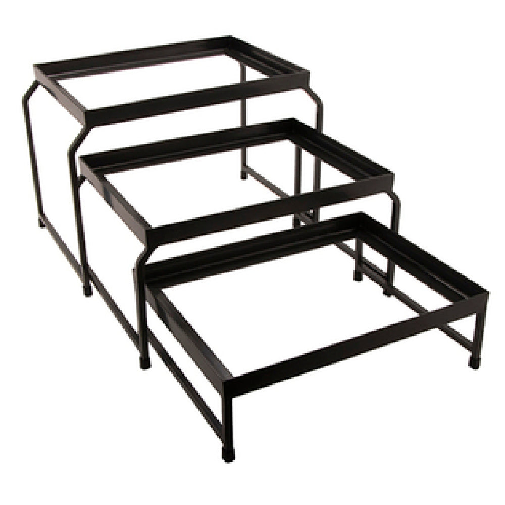 The GET Enterprises IR-735-MG Urban Renewal™ Nesting Stand Set 3-piece 3-tier is a versatile and robust fixture designed to enhance presentation and functionality in various settings. This set includes three tiers of nesting stands, with the largest measuring 9-3/8 inches in width, 14-1/8 inches in depth, and 9-3/4 inches in height. Constructed from powder-coated iron, the stands boast a durable and stylish metal grey finish, making them a suitable choice for both contemporary and industrial-themed environments. The design is thoughtfully articulated to accommodate specific products, fitting models such as WB-1292-MG, WB-1292WD-W, WB-1292WD-UR, and WB-1292WD-GA seamlessly. This nesting stand set is packaged as a single unit, ensuring convenient storage and transportation. Its sturdy construction ensures longevity, while the aesthetic appeal aligns with modern design preferences, making it an attractive option for retail displays, catering services, and hospitality settings. The GET Enterprises IR-735-MG Urban Renewal™ Nesting Stand Set provides an effective solution for those seeking to optimize space and presentation in their commercial establishments, combining functionality with a sleek design to meet diverse market segment needs efficiently.